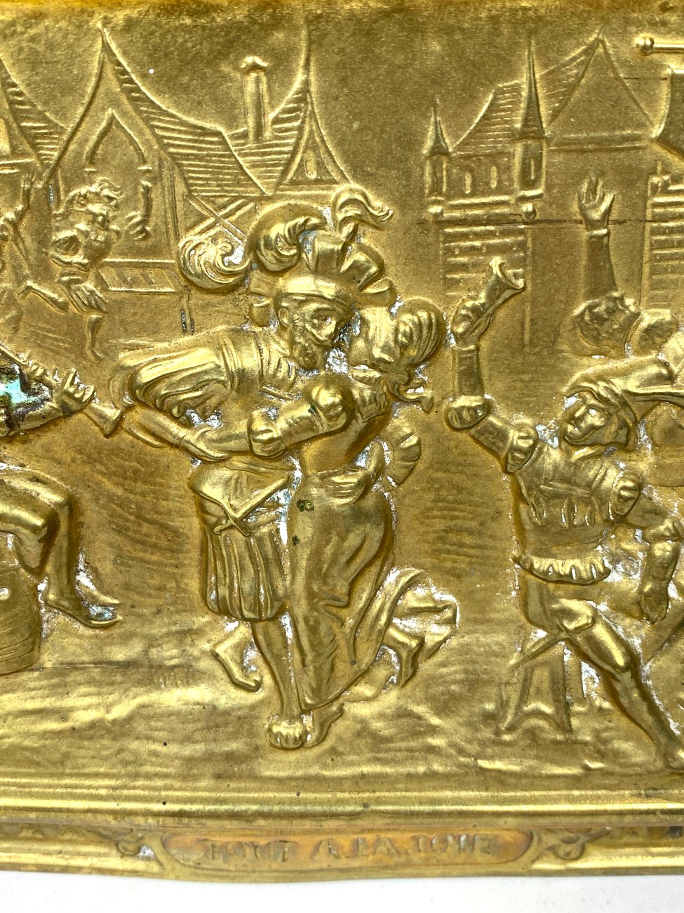 Pakabinamas žalvarinis bareljefas su šokių scena “Tout à la joie”.