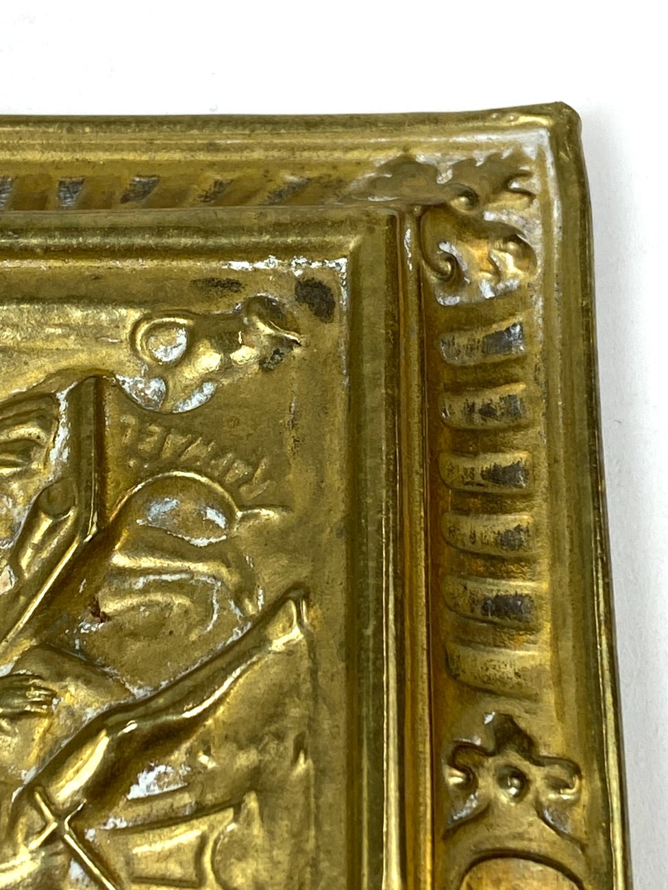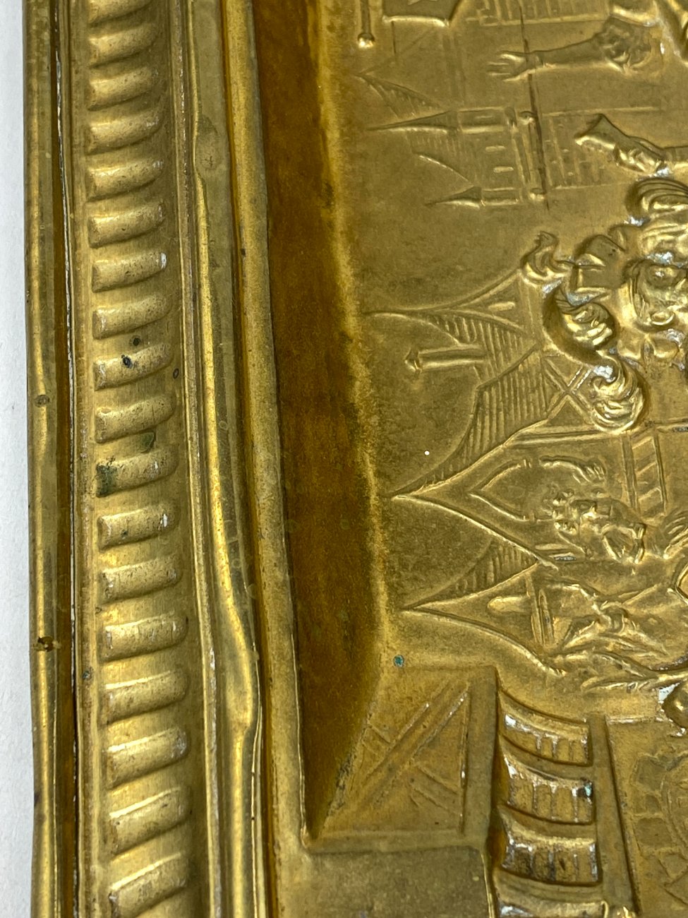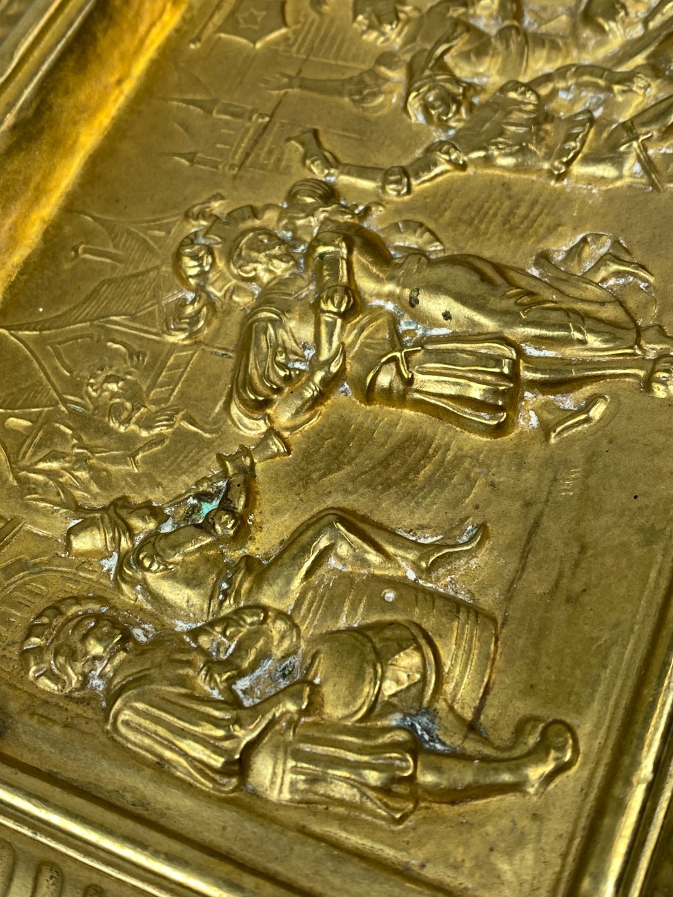 | Papildoma informacija | Matoma žalvario oksidacija, vietomis yra įlenkimų. |