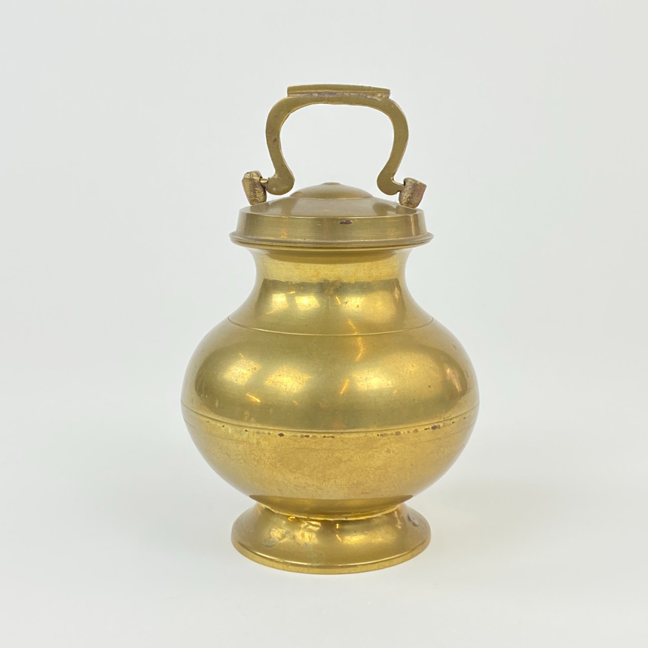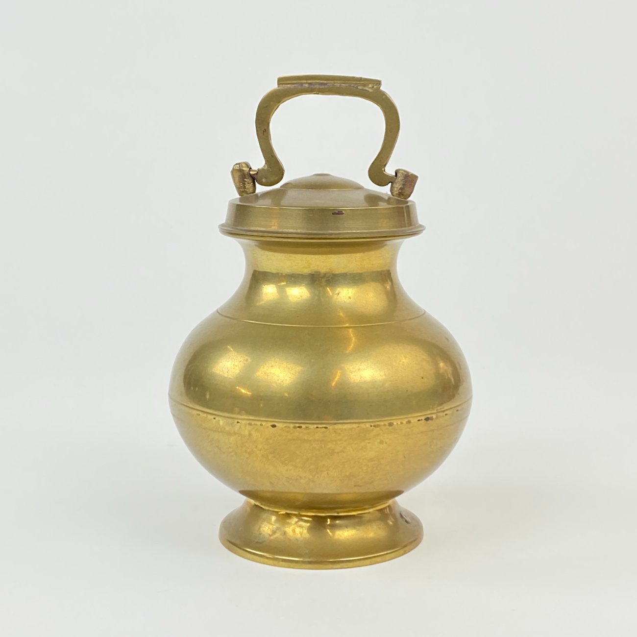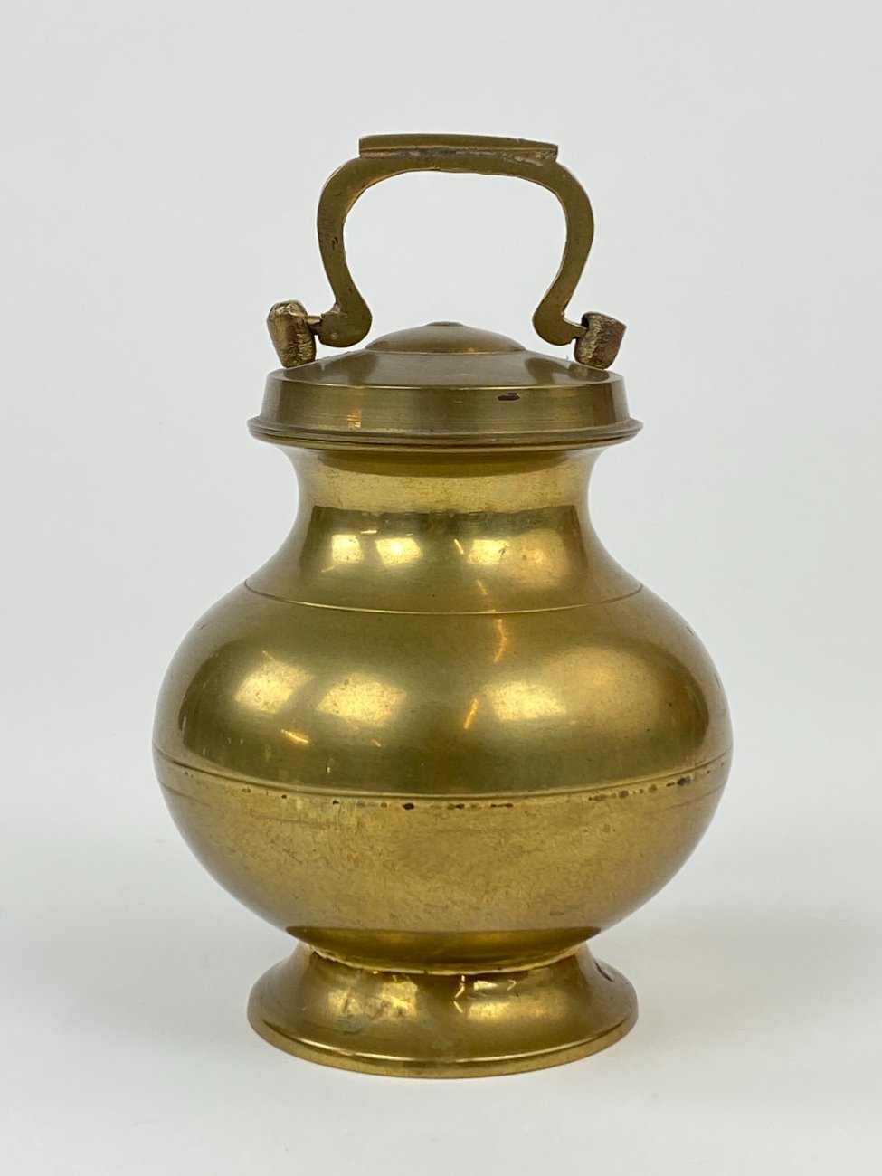 Metalinis, žalvariu dengtas puodas su dangčiu “Gangajali”