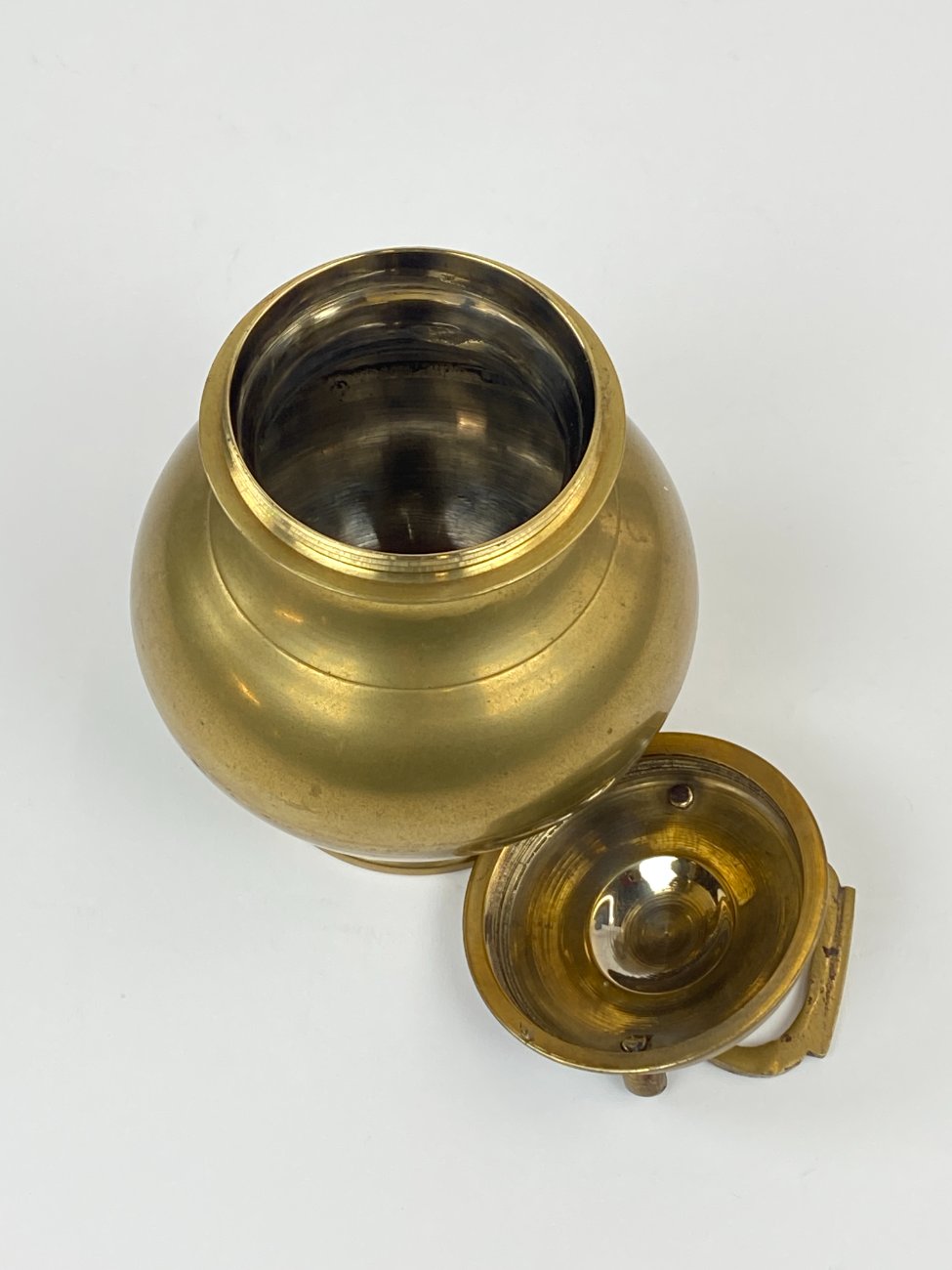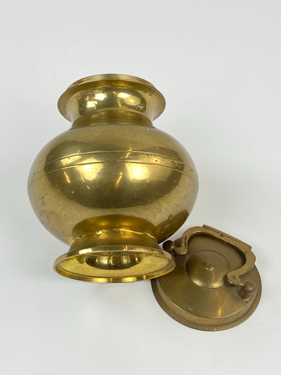 Metalinis, žalvariu dengtas puodas su dangčiu “Gangajali” 10x10x13 cm
