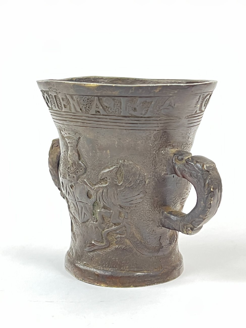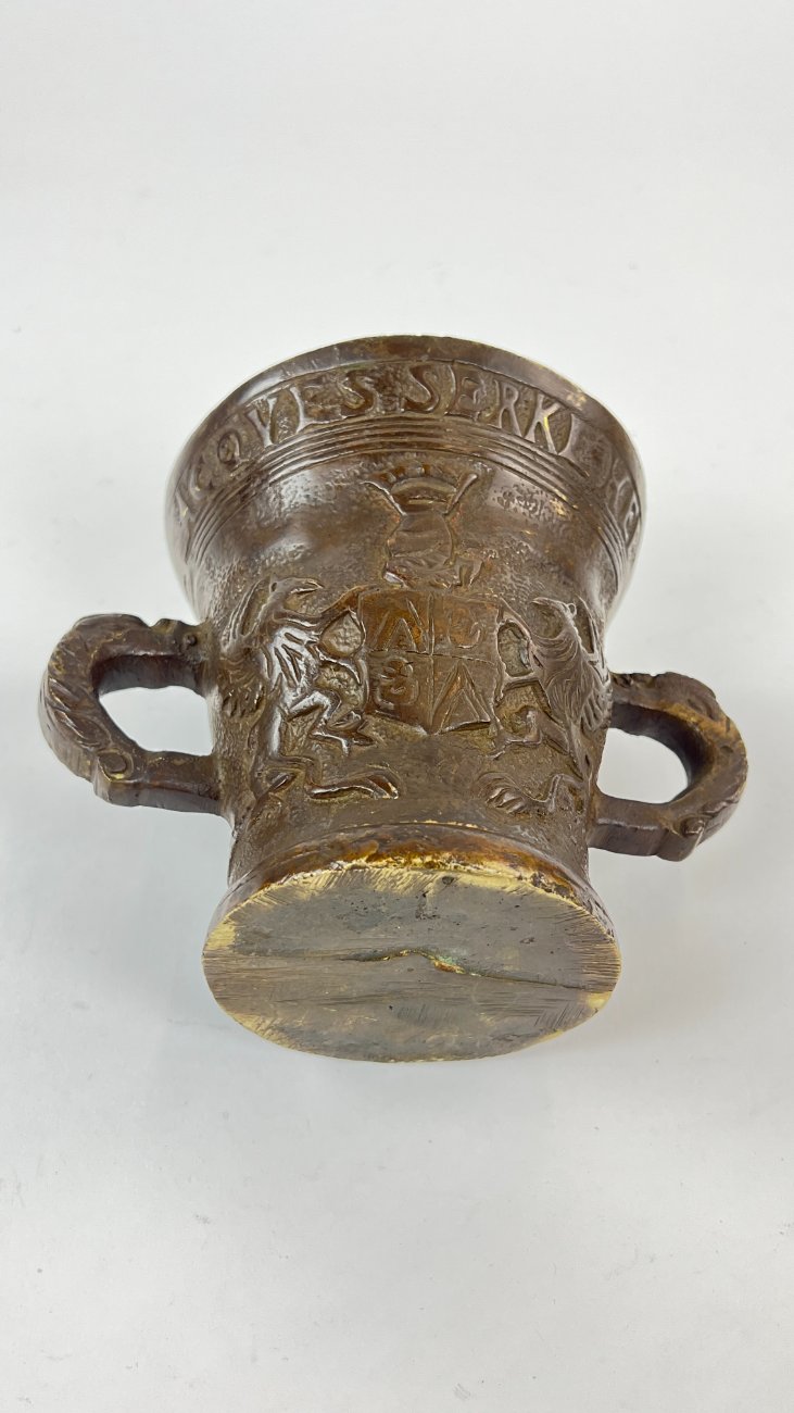 Žalvarinis bareljefinis indas su dviejomis rankenomis.