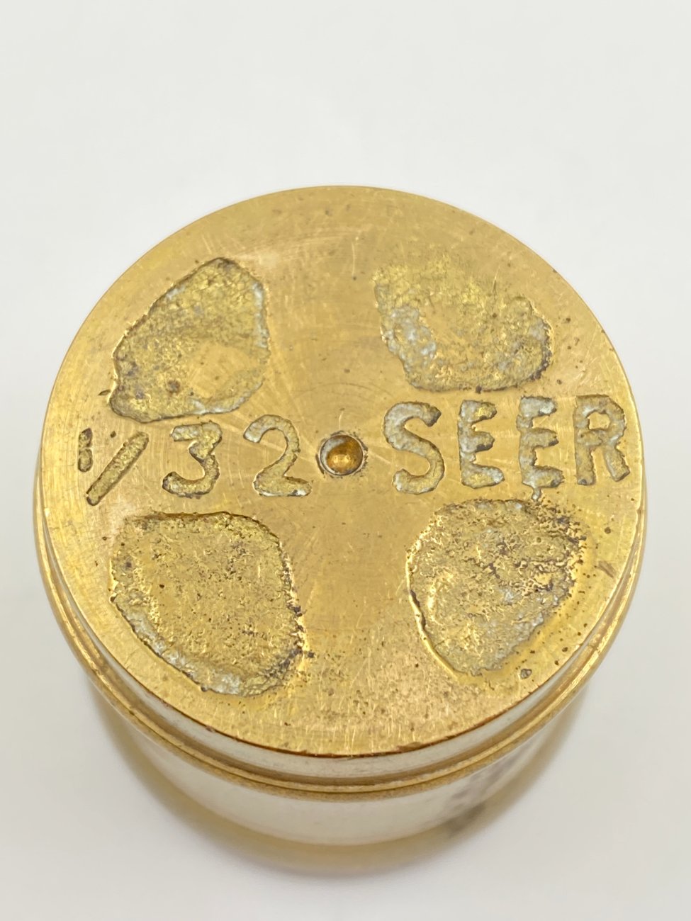 Žalvarinė 1/32 seer matavimo taurelė. Seer yra tradicinis masės ir dydžio vienetas naudotas didžiojoje Azijos dalyje iki XX a. vidurio. Šiai dienai vis dar naudojamas Afganistane, Irane ir tam tikrose Indijos dalyse.