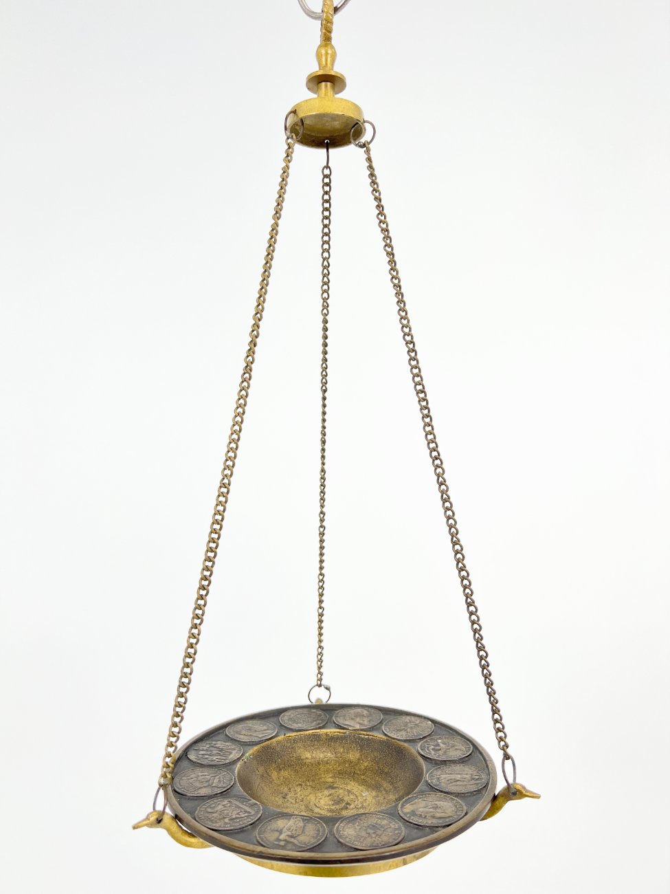 Žalvarinė pakabinama lėkštė su senovinių monetų atvaizdais 19,5×19,5×42 cm