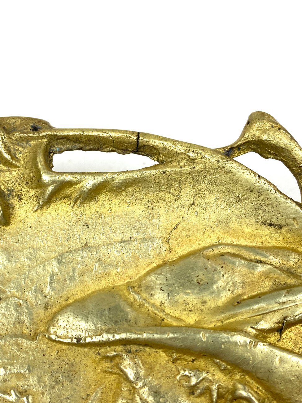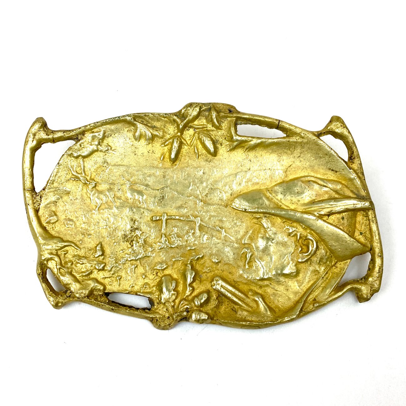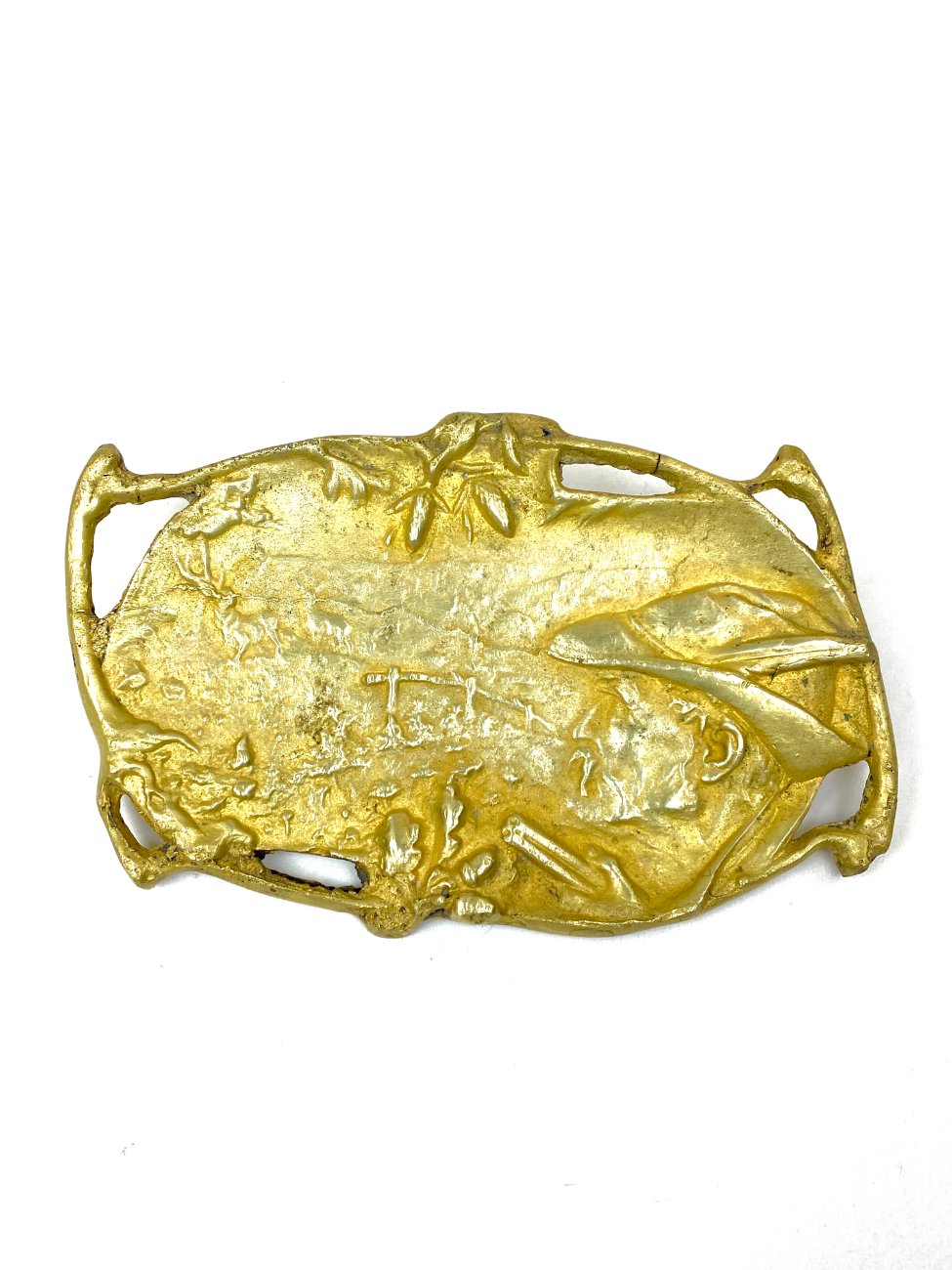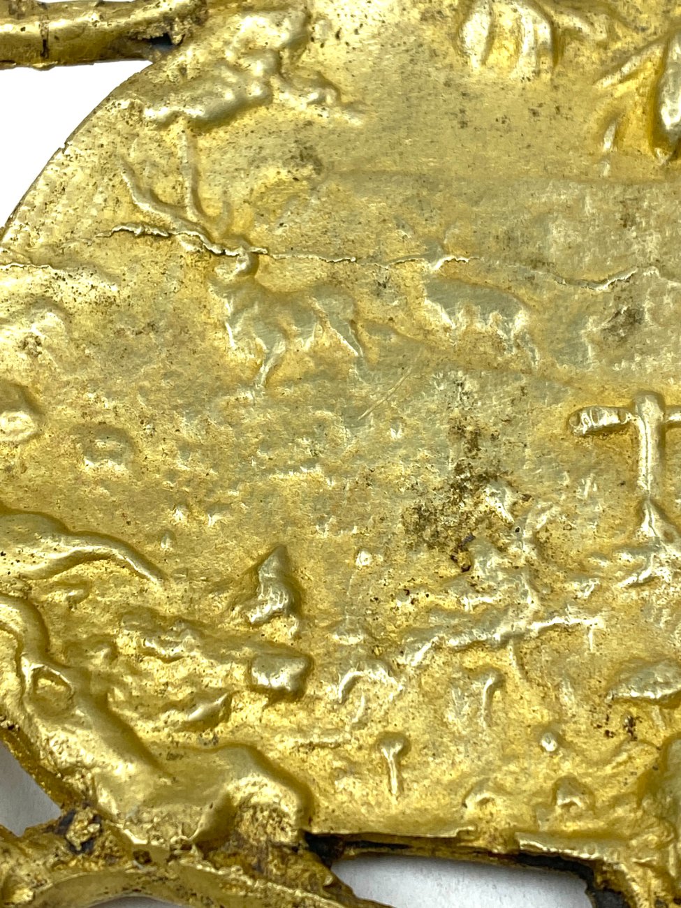 Žalvainė bareljefinė lėkštelė su medžioklės scena 12x19x2 cm