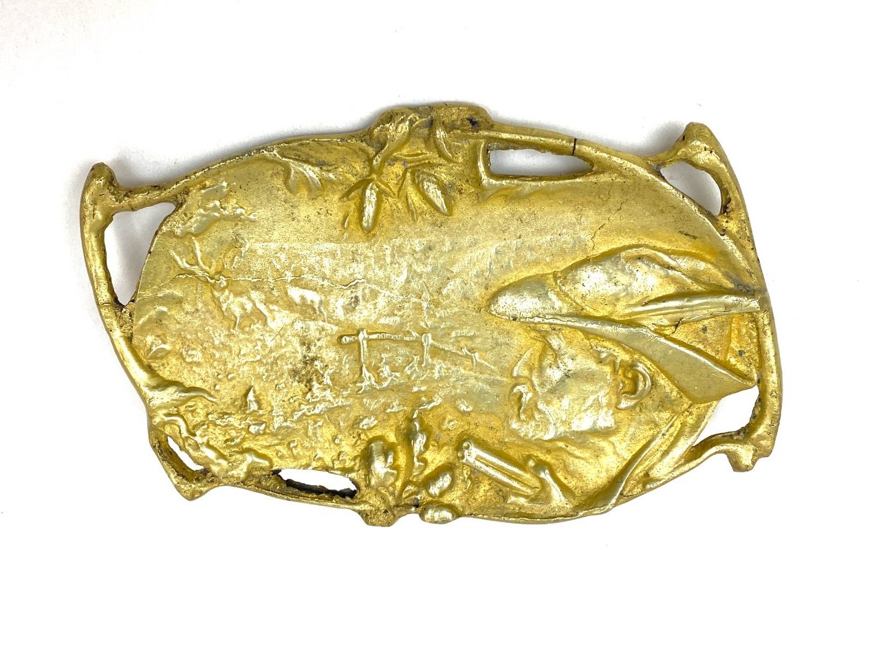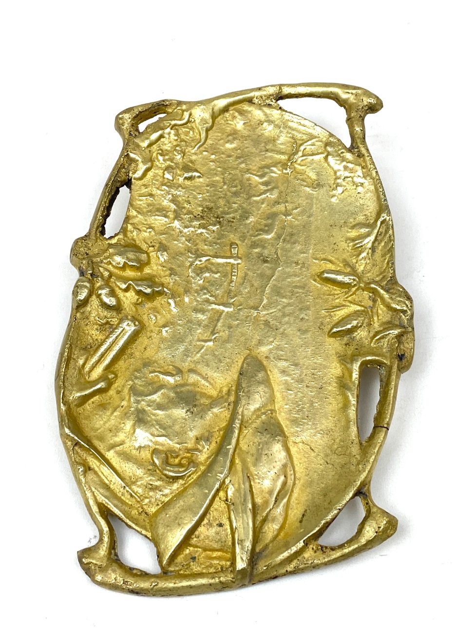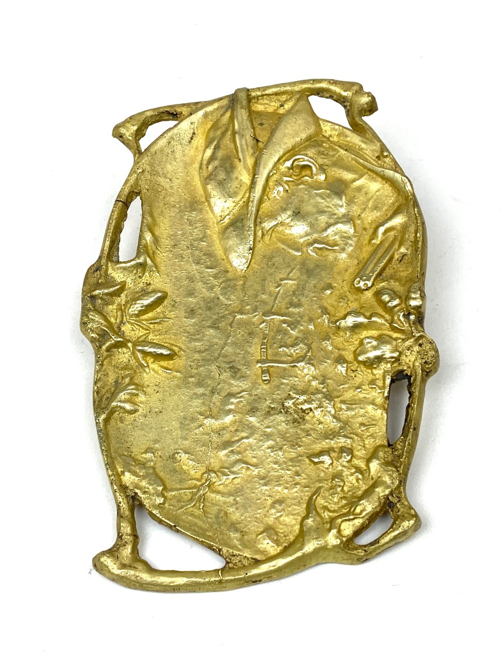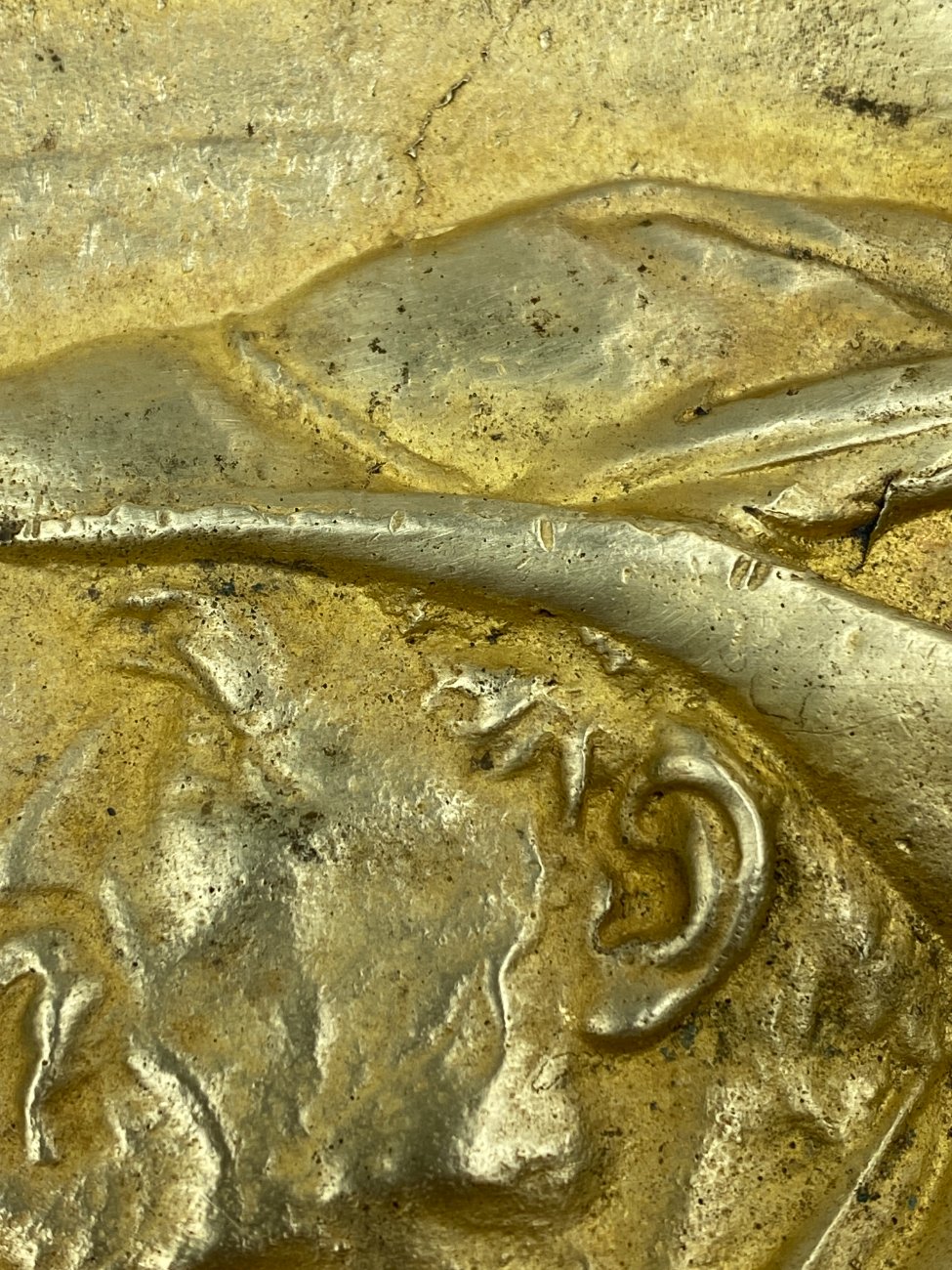 Žalvainė bareljefinė lėkštelė su medžioklės scena 12x19x2 cm