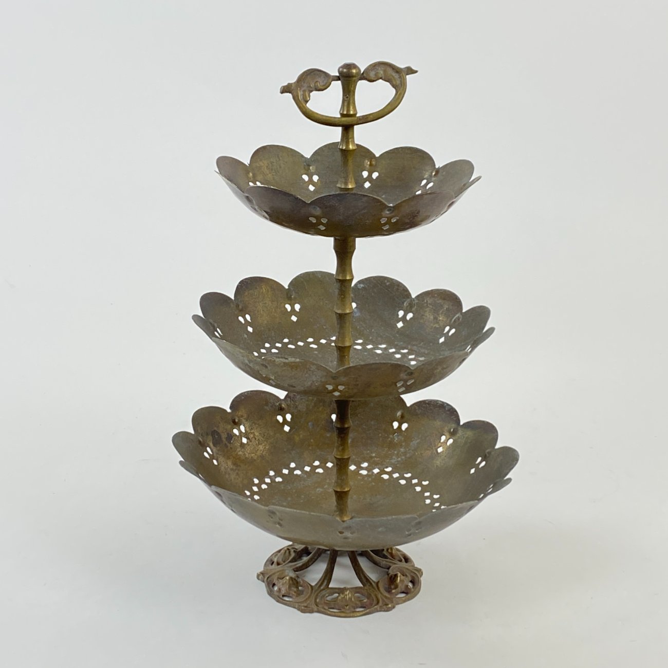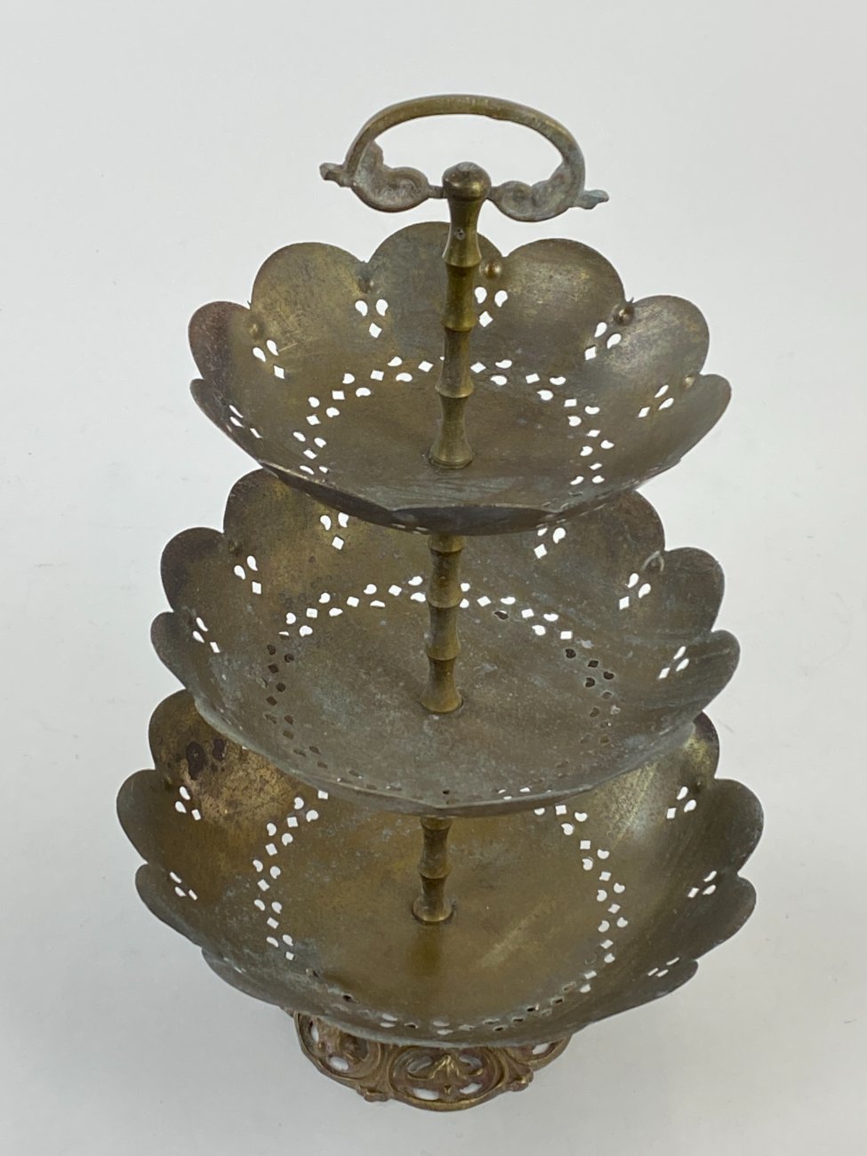 Žalvarinis trijų aukštų serviravimo indas.