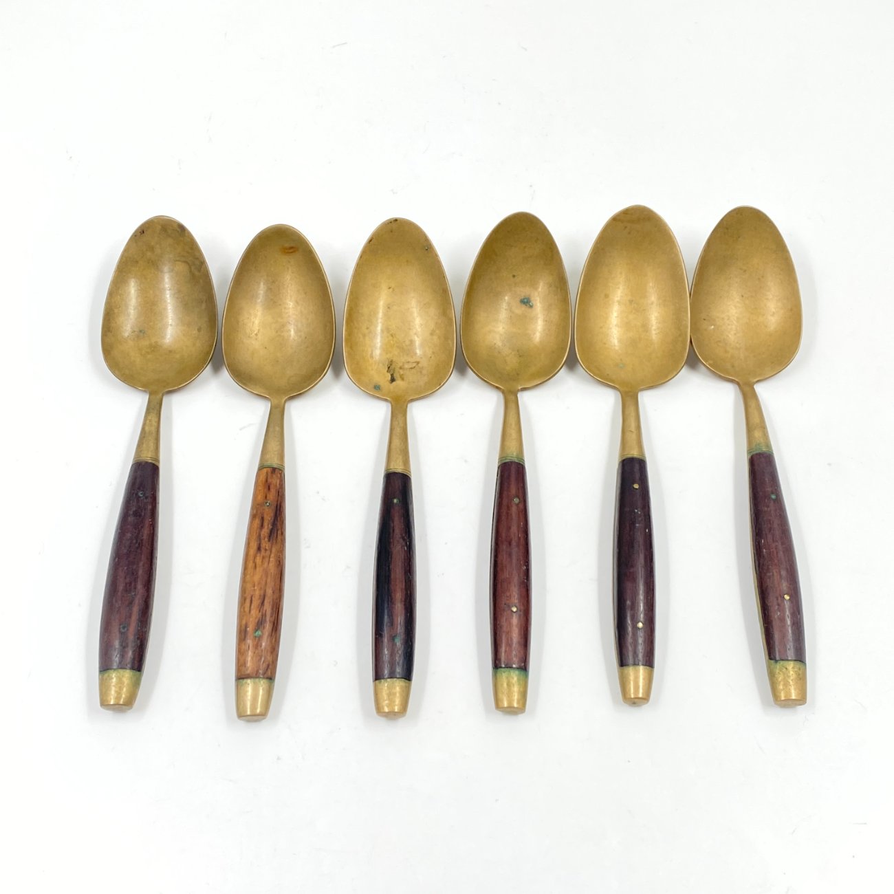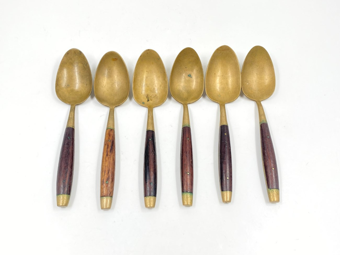 Žalvariniai šaukštai medinėmis rankenomis 6 vnt. komplektas.