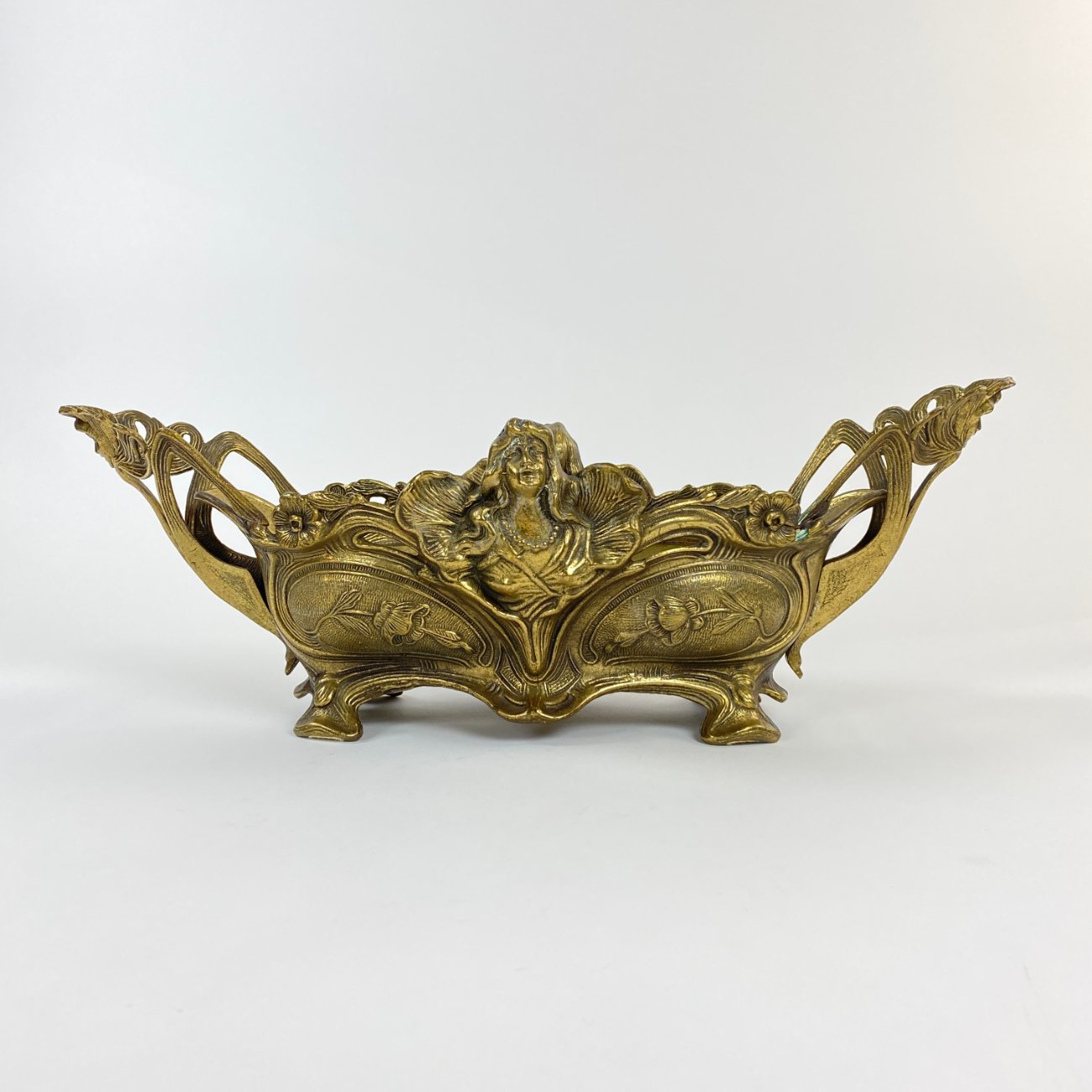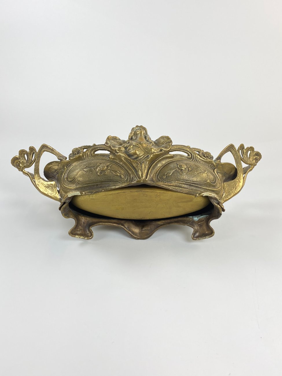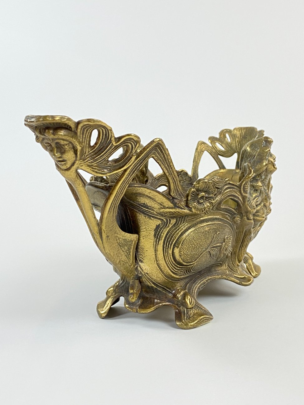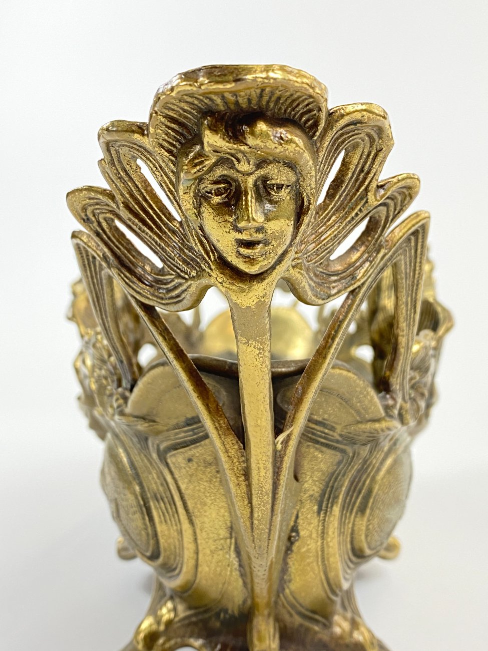 Art Nouveau stiliaus žalvarinis vazonas su moters atvaizdu.