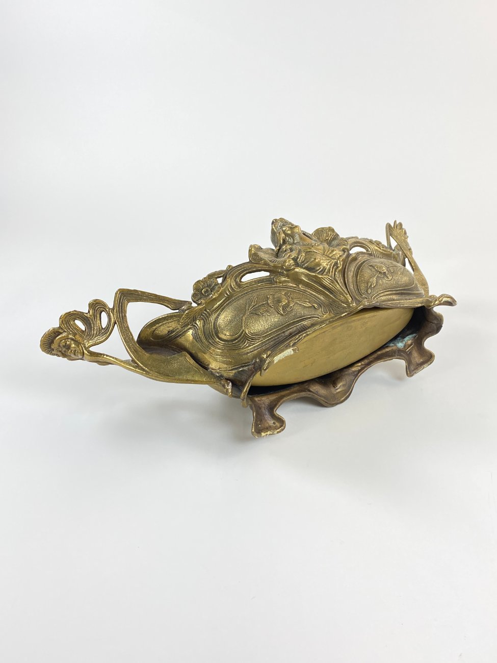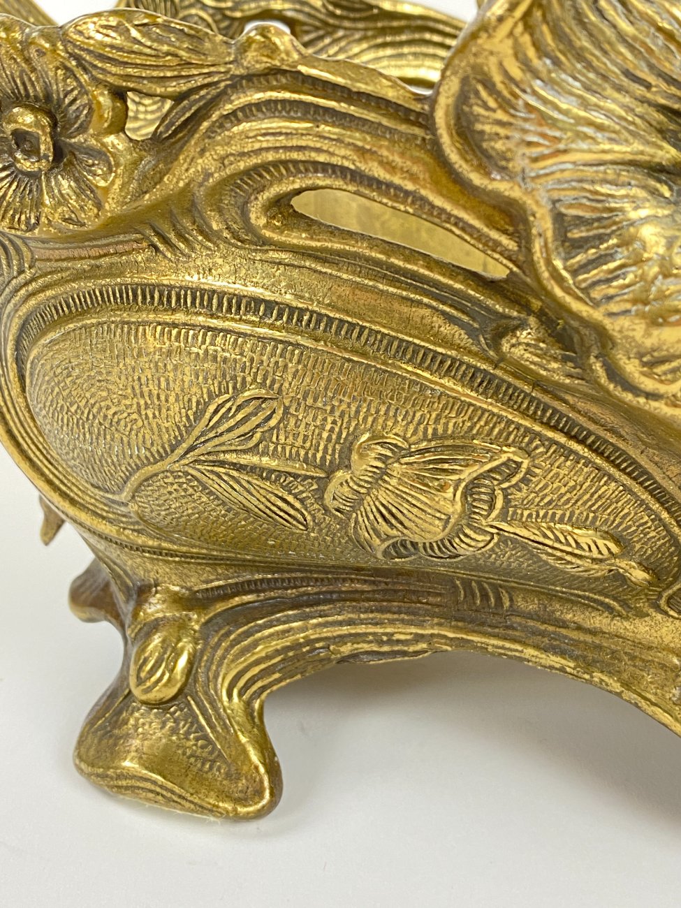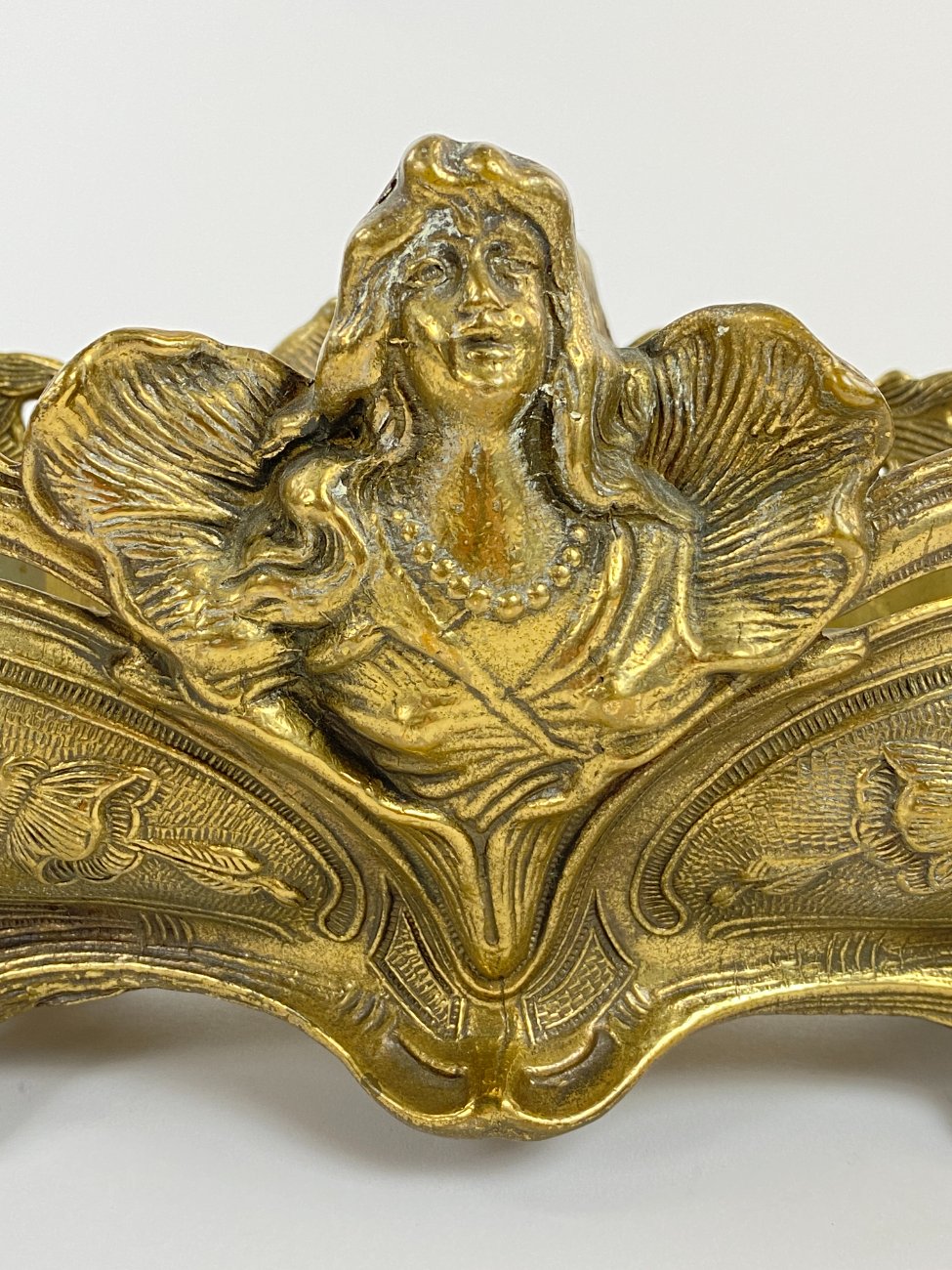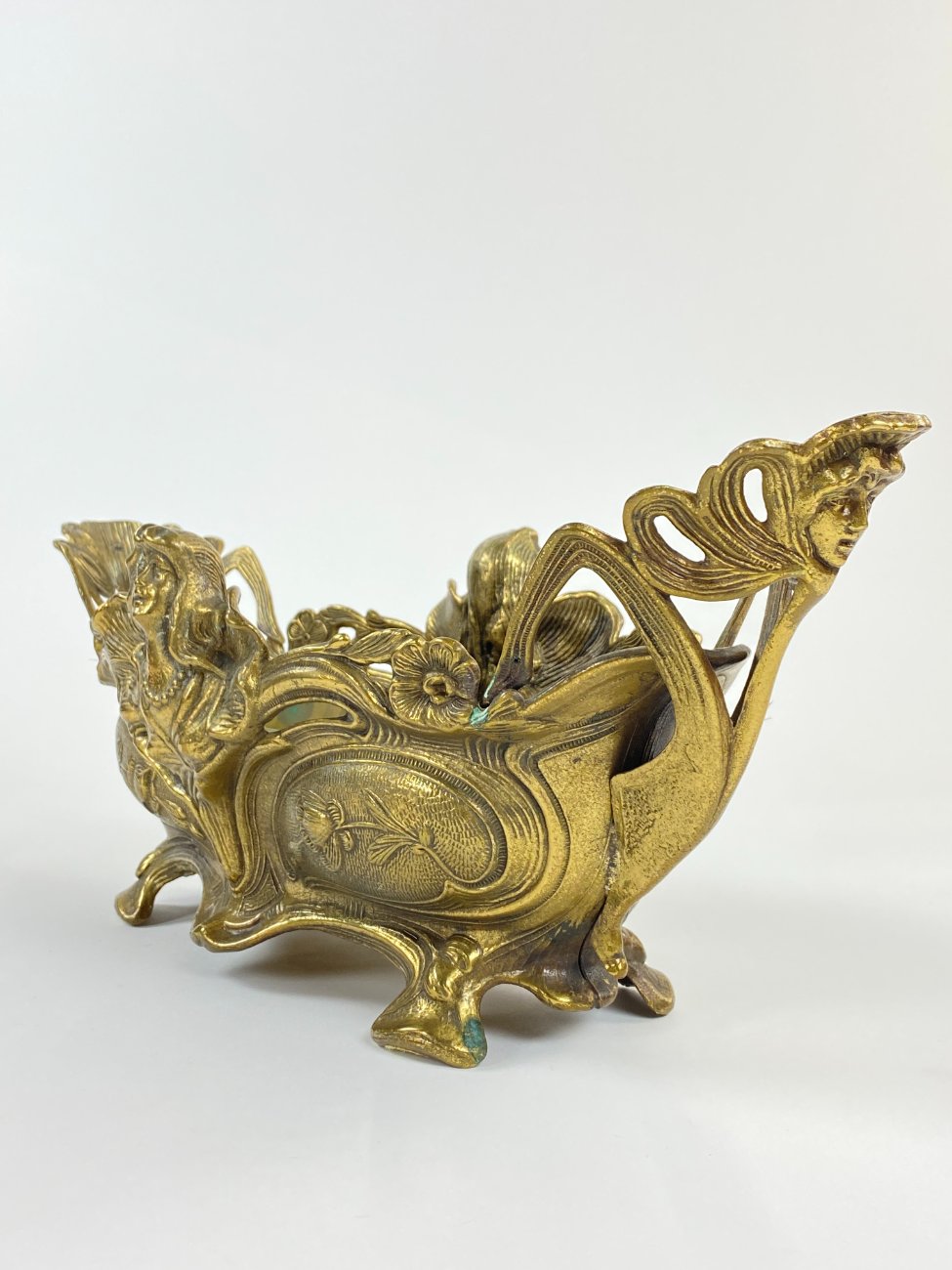 Art Nouveau stiliaus žalvarinis vazonas su moters atvaizdu.
