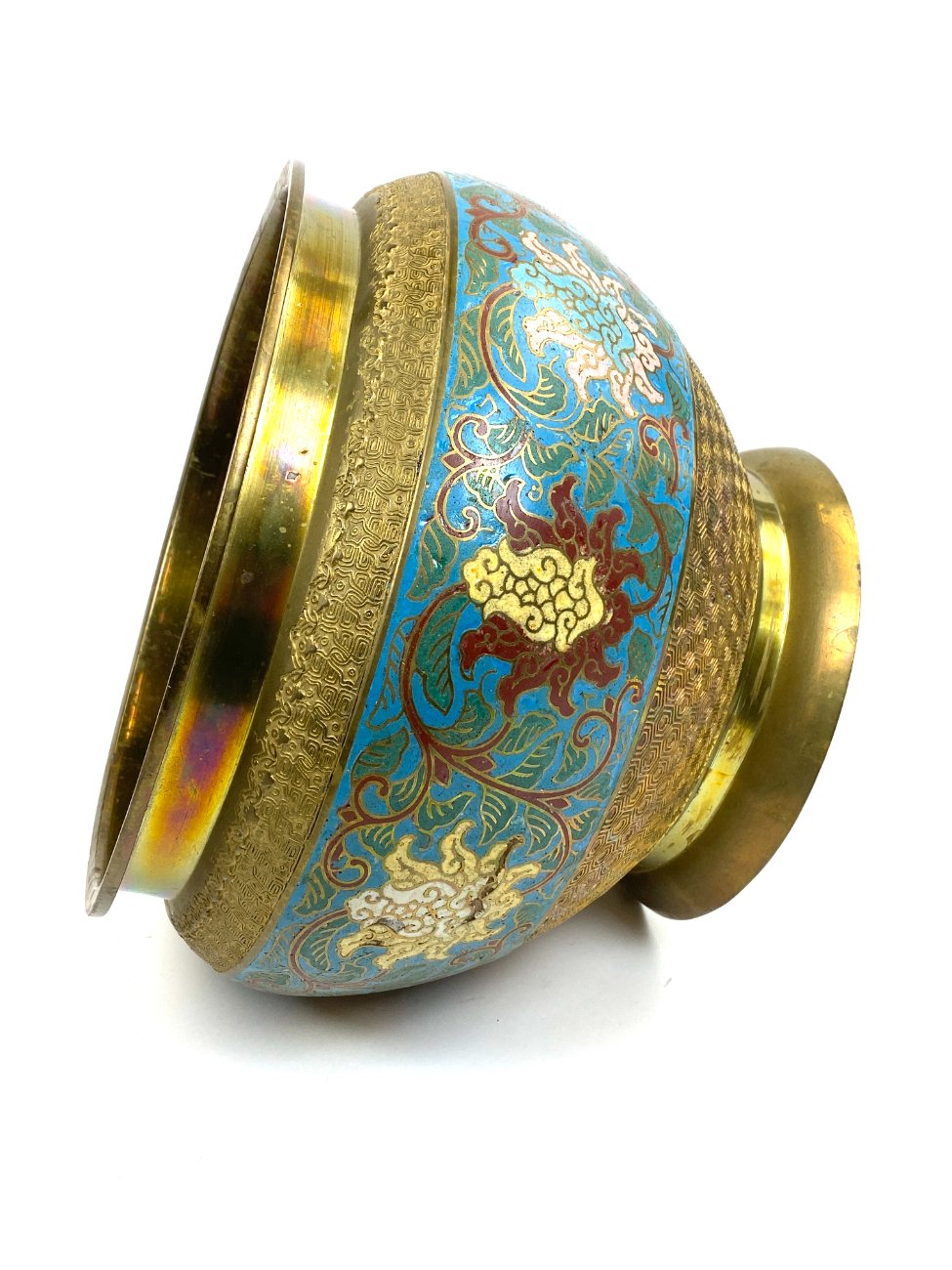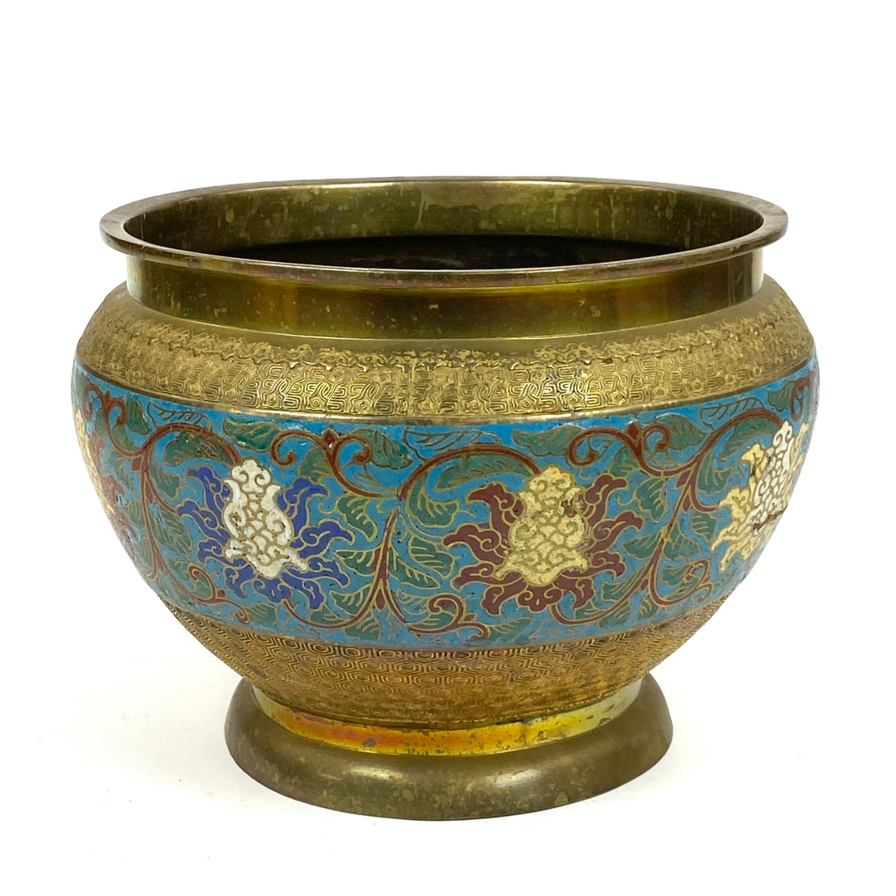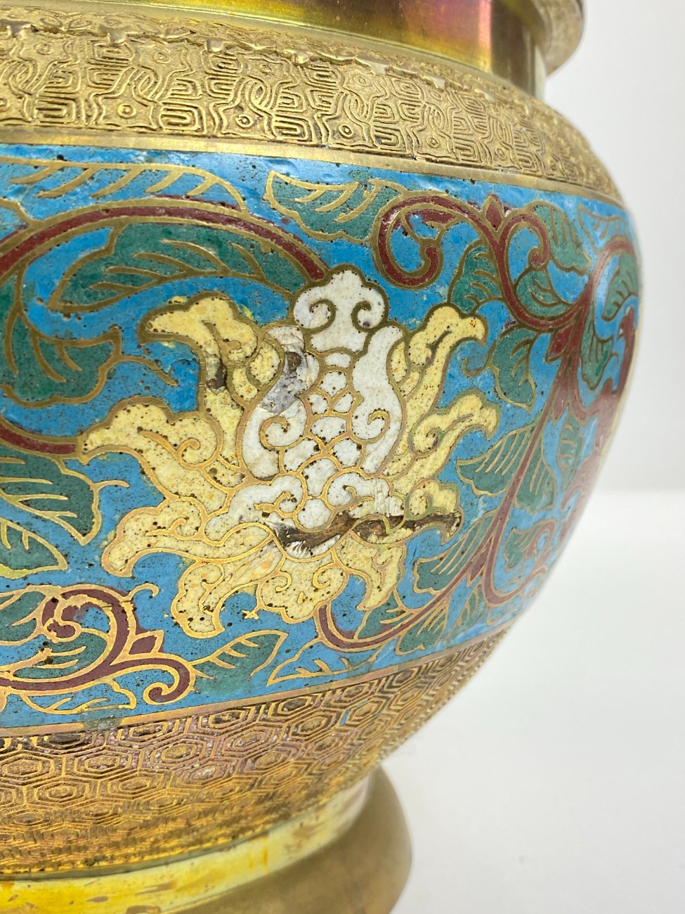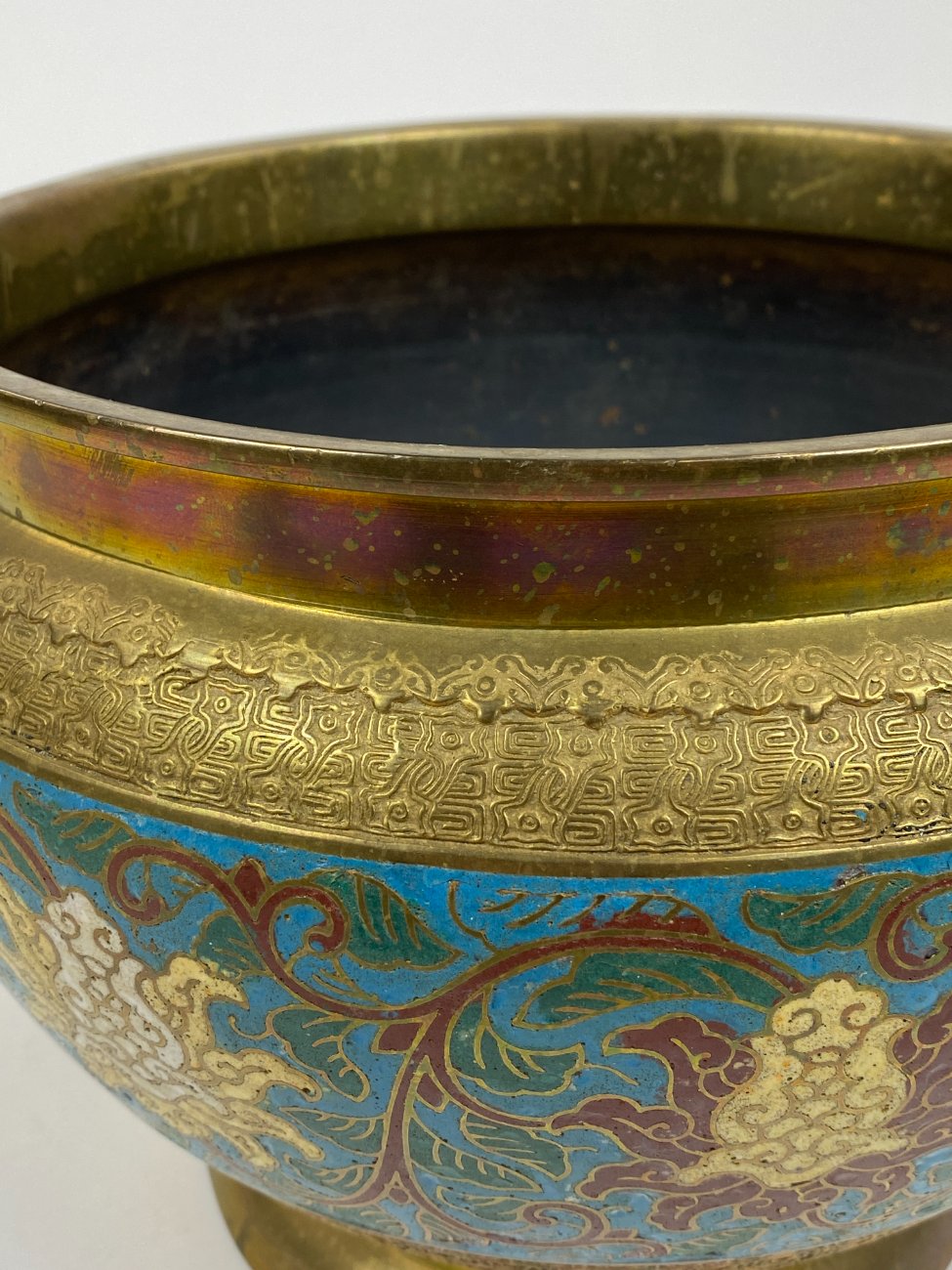 Rytietiškas žalvarinis emaliuotas vazonas.