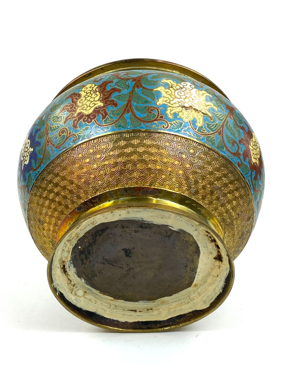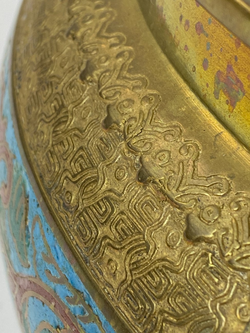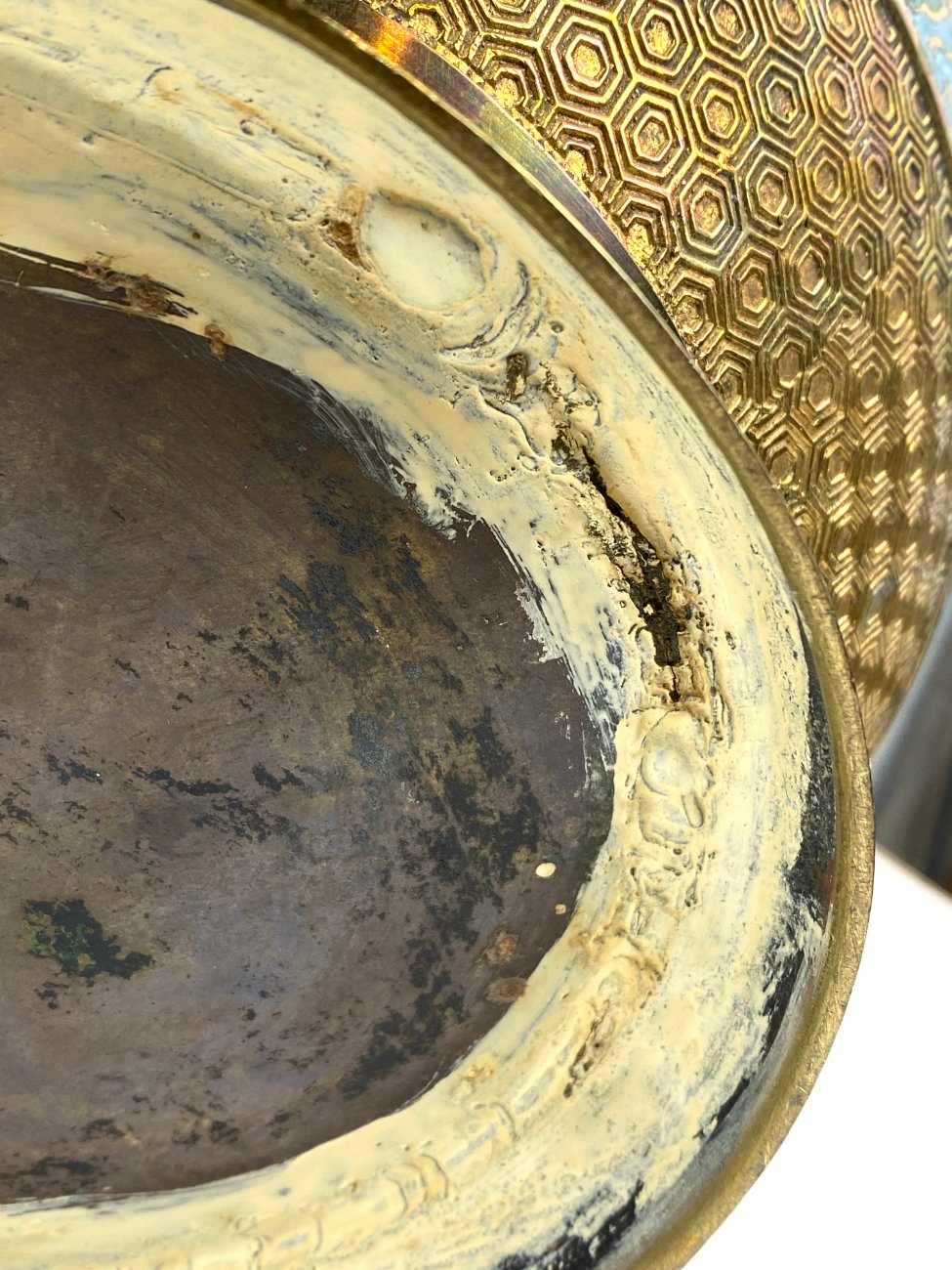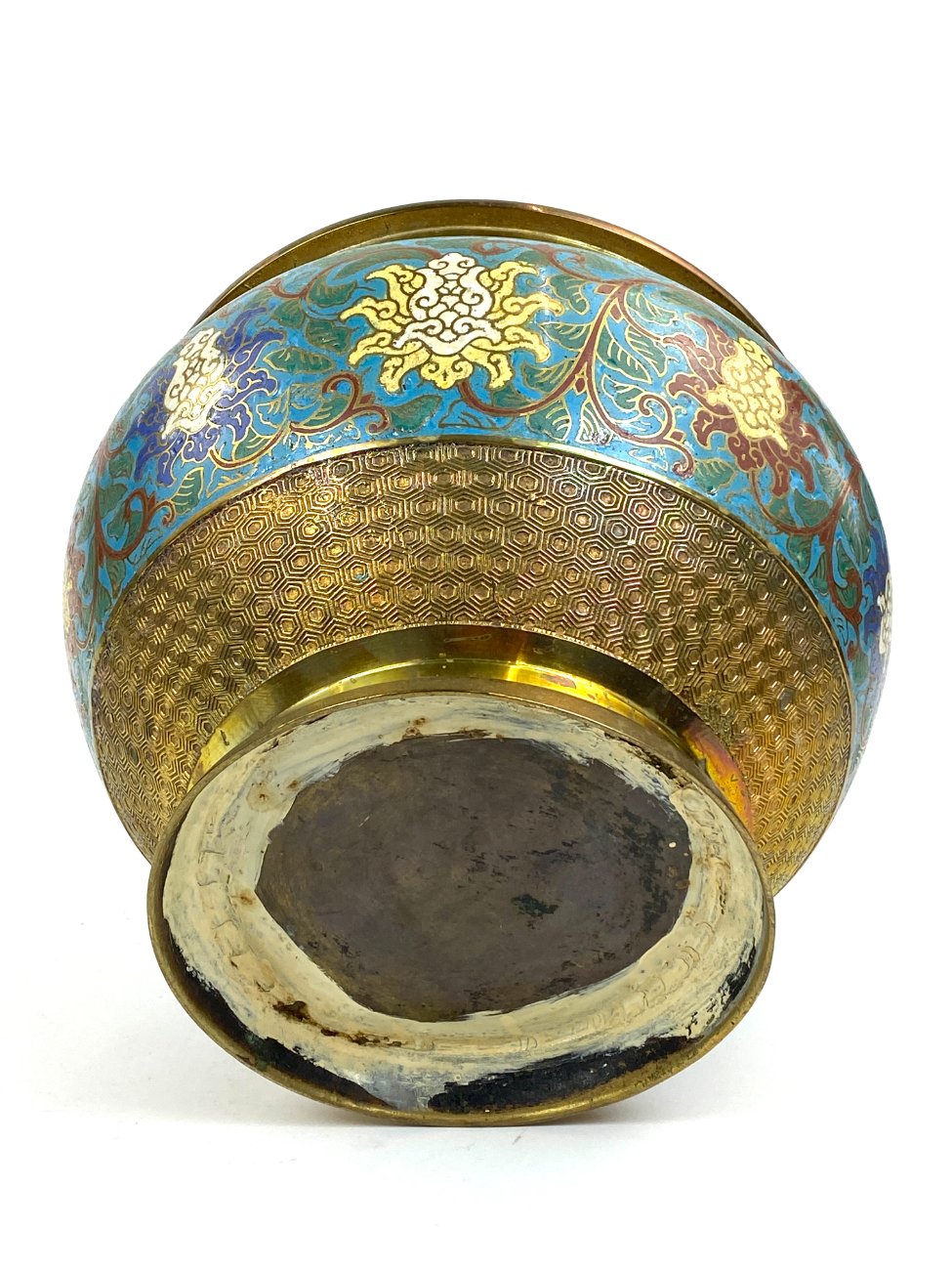 Rytietiškas žalvarinis emaliuotas vazonas.