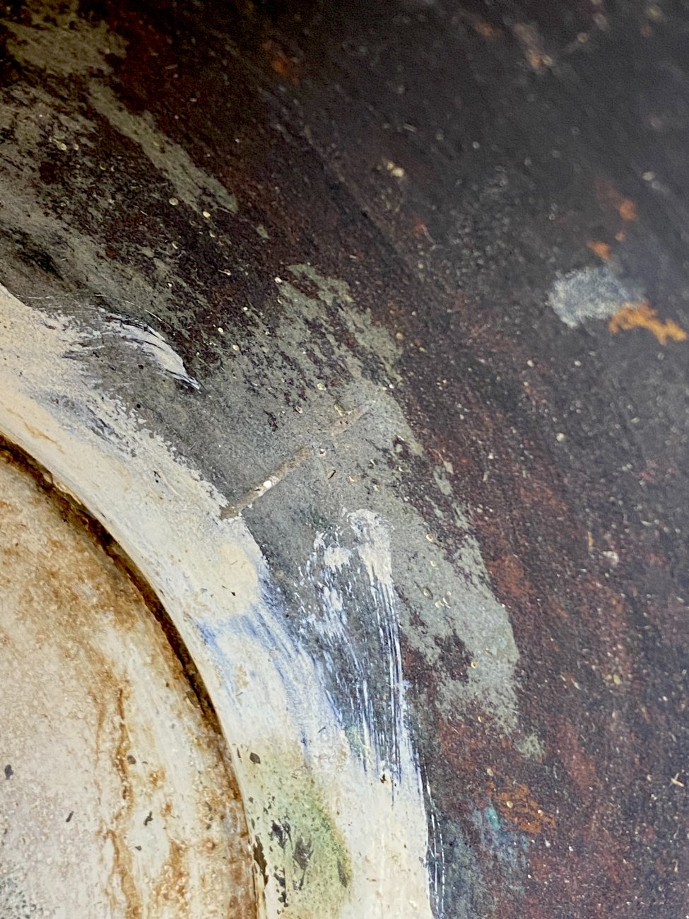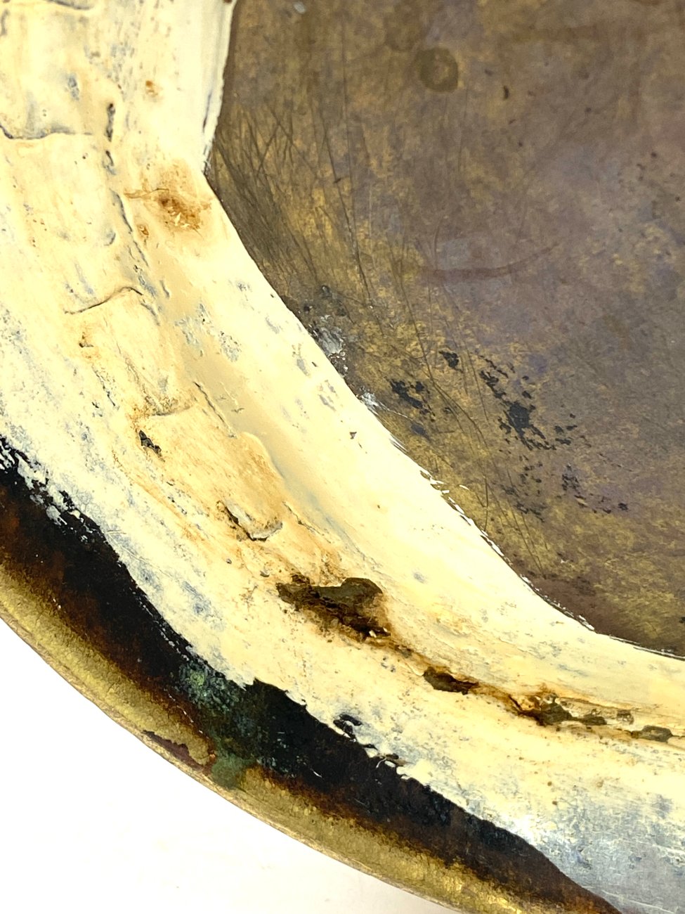 | Papildoma informacija | Yra paviršiaus pabraižymų, žalvario oksidacijos dėmių. Vazono dugnas kiauras. |