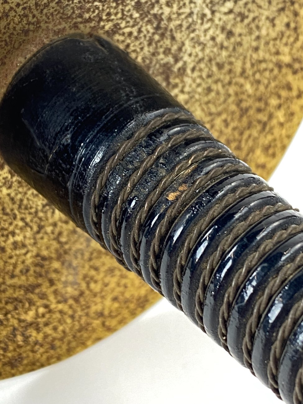 | Papildoma informacija | Ant metalo yra rūdžių. Matoma žalvarinio rankenos galiuko oksidacija. |