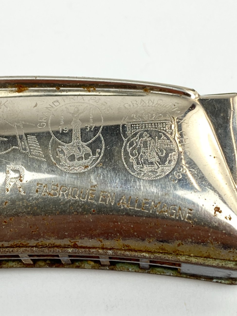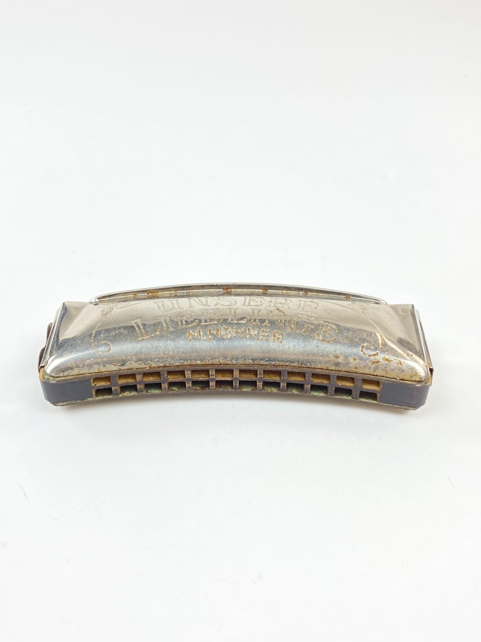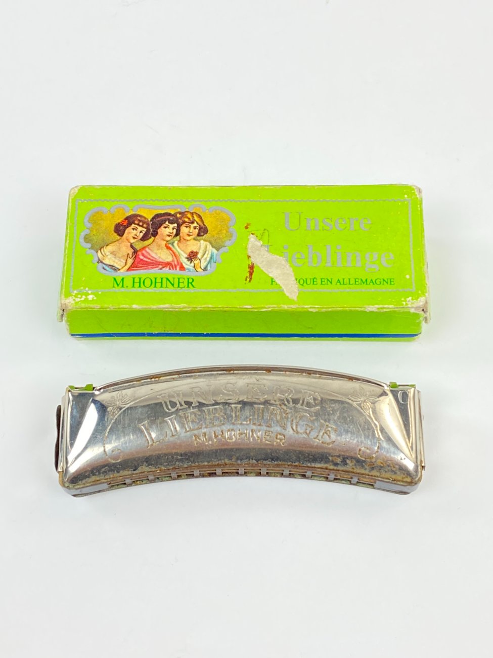 | Papildoma informacija | Lūpinė armonikėlė 3,5x10,5x2 cm. Dėžutė 4x11x3 cm. Dėžutė suplyšusi. Ant armonikėlės yra rūdžių. |