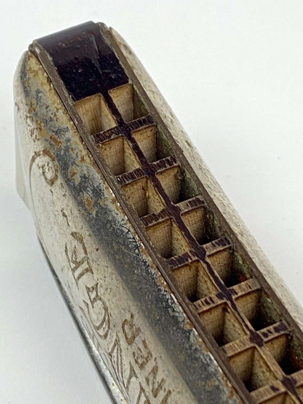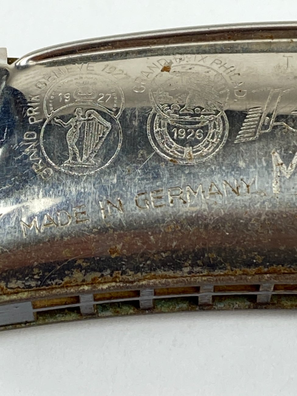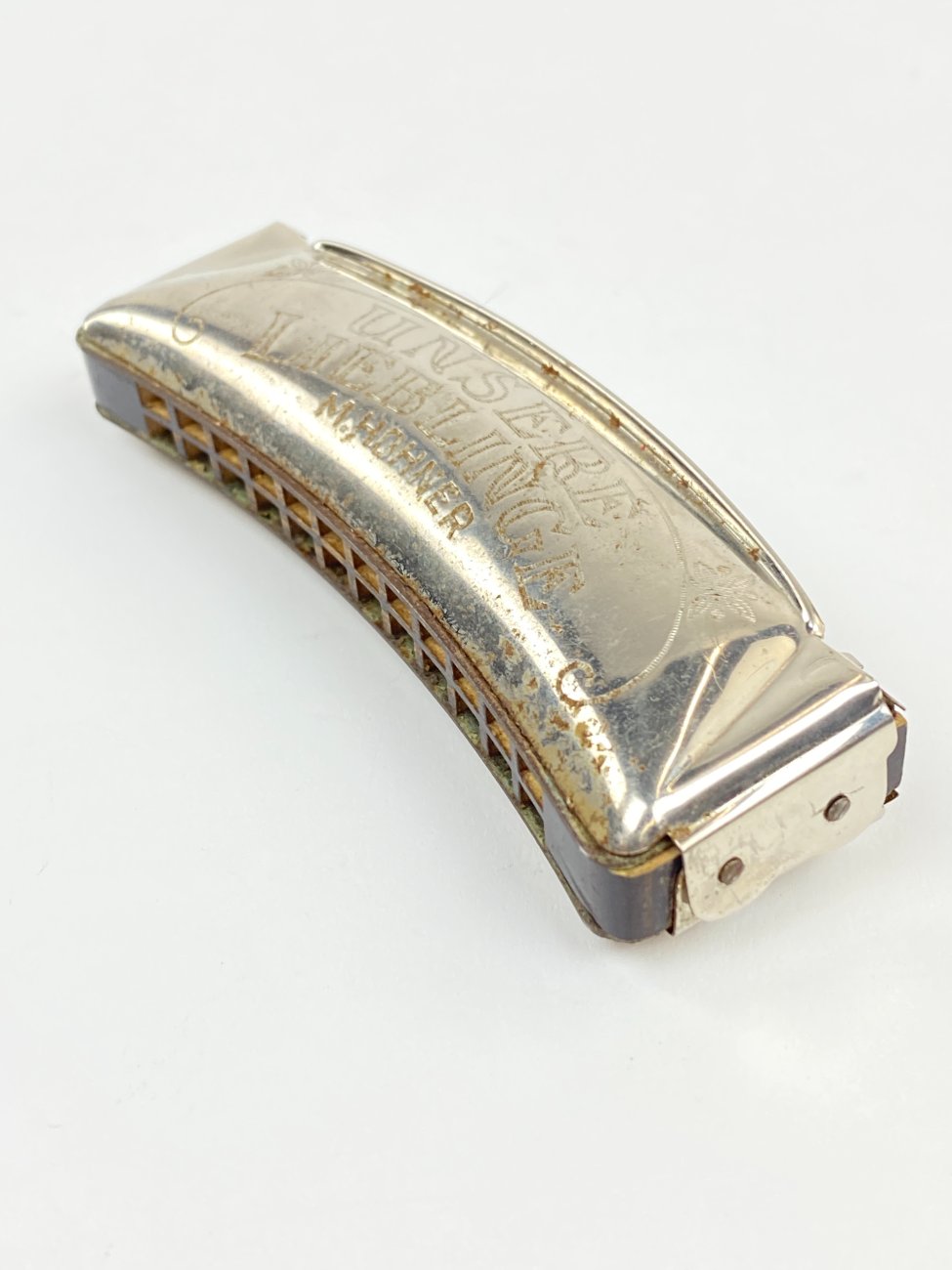 | Papildoma informacija | Lūpinė armonikėlė 3,5x10,5x2 cm. Dėžutė 4x11x3 cm. Dėžutė suplyšusi. Ant armonikėlės yra rūdžių. |