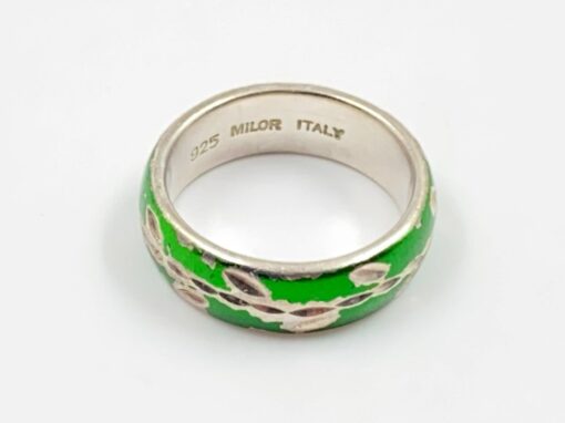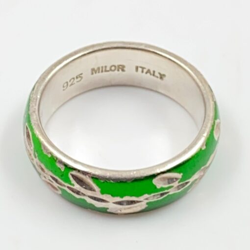 Sidabrinis “Milor” žiedas su žalios spalvos emaliu, 16 dydis, 925 praba.