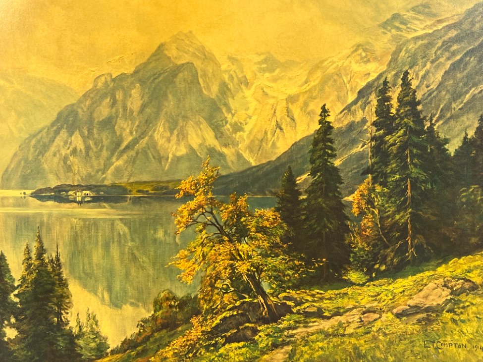 Edward Theodore Compton 1914 m. darbo “Der Königssee” printas mediniame rėme.