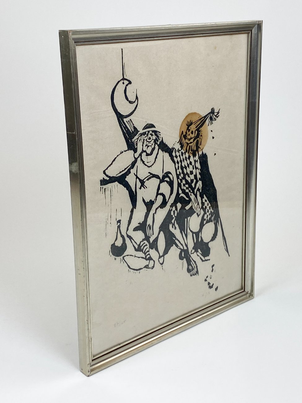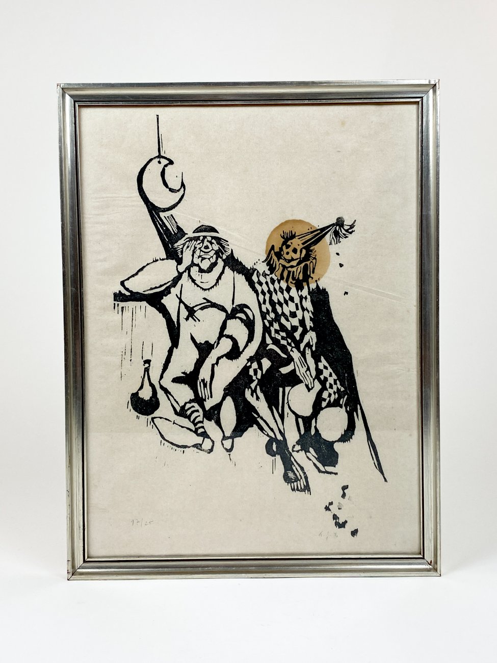 Grafikos darbas, tir. 17/25, mediniame rėme su stiklu.