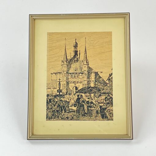 Grafikos darbas “Vernigerodės rotušė” mediniame rėme su stiklu.