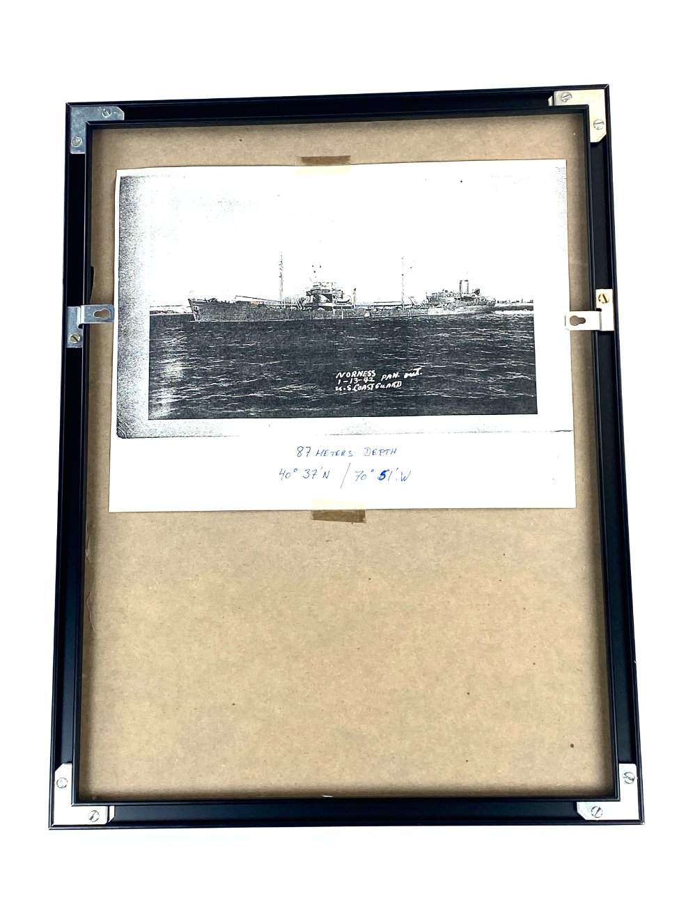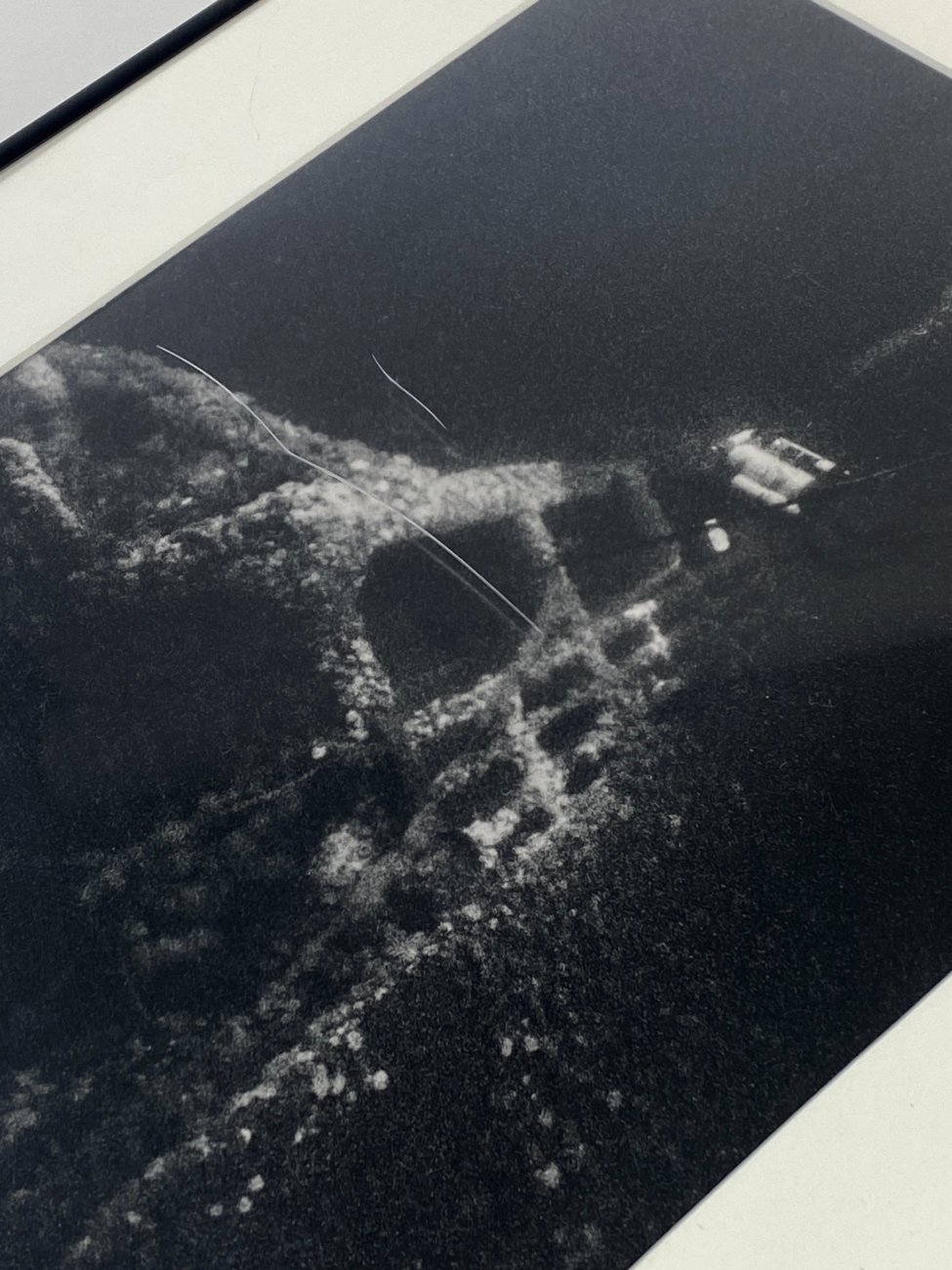Nuskendusio laivo printas metaliniame rėme