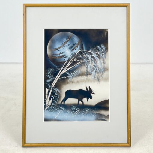 Printas su briedžio atvaizdu mediniame įstiklintame rėme.