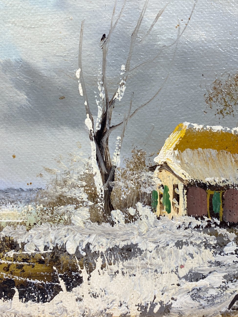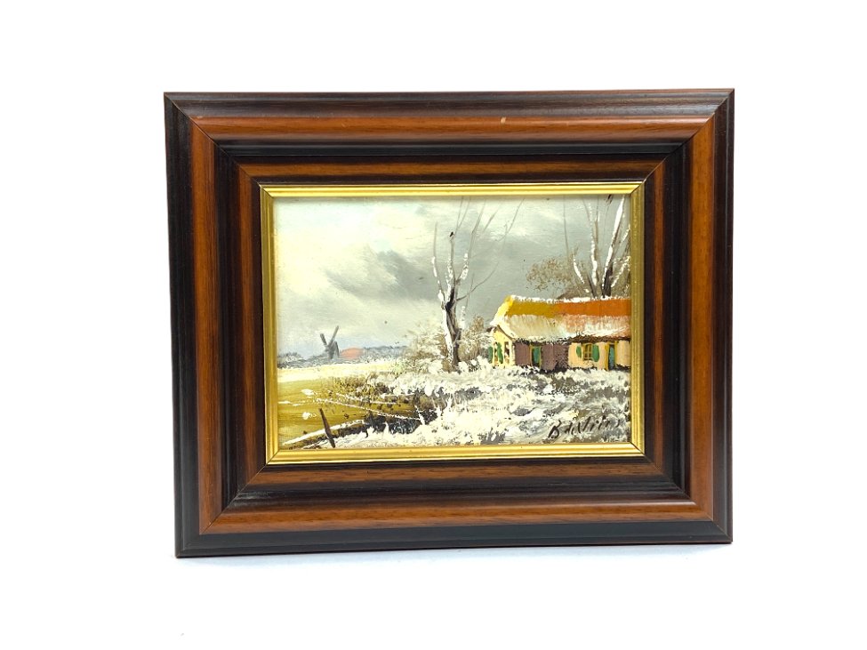 Aliejiniais dažais ant drobės tapytas žiemos peizažas medžio rėme 3x27x22 cm