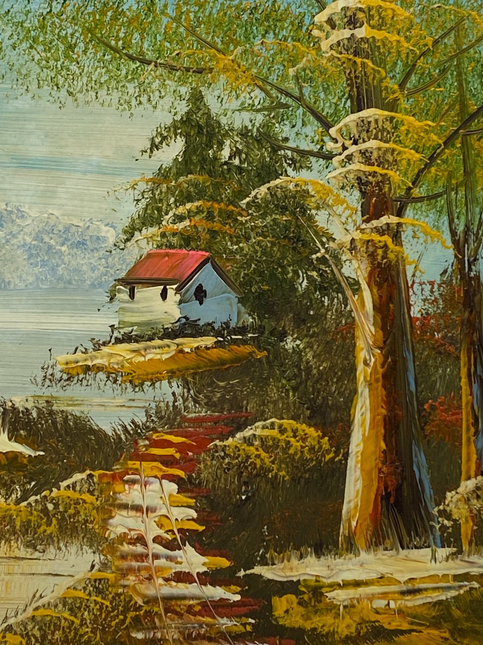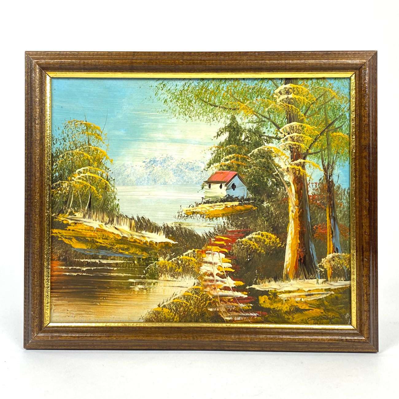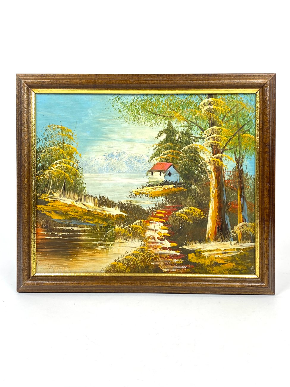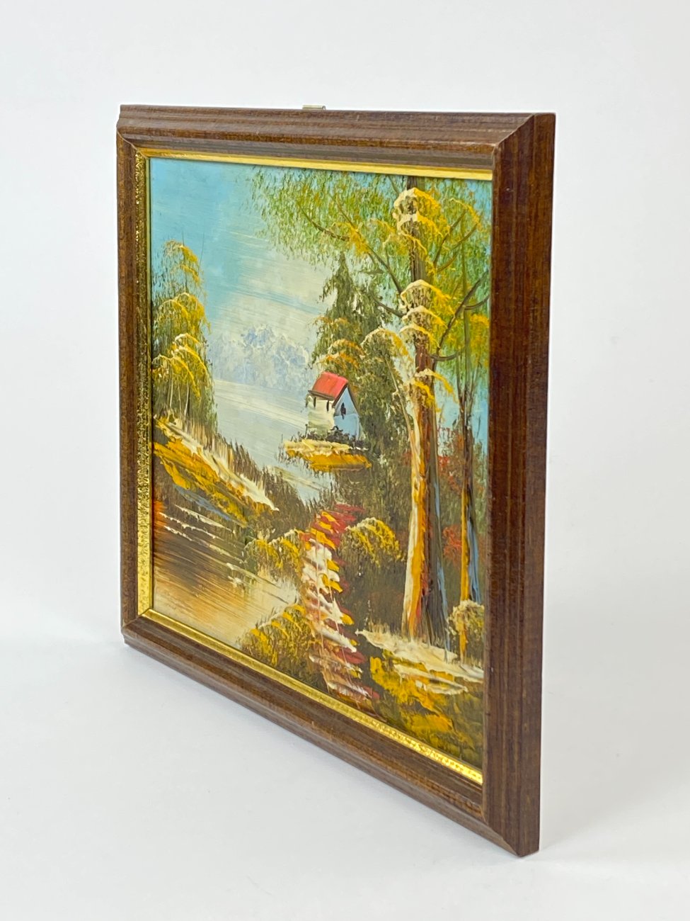 Guašu ant faneruotės tapytas gamtos peizažas 1x27x23 cm