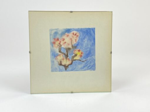 Įstiklintas akvarele tapytas darbas “Vyšnios žydėjimas” 1x20x20x cm