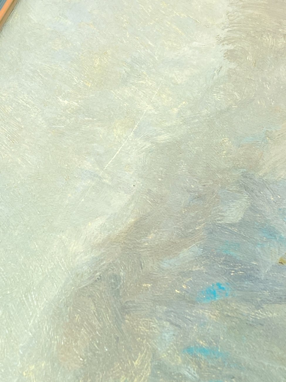 | Papildoma informacija | Ant paveikslo drobės yra įbrėžimas, įmušimas ir įdubimų. Ant rėmo yra pabraižymų ir dažų pažeidimų. |