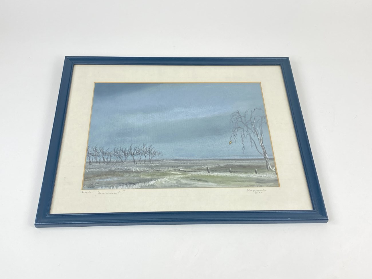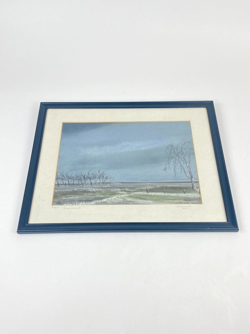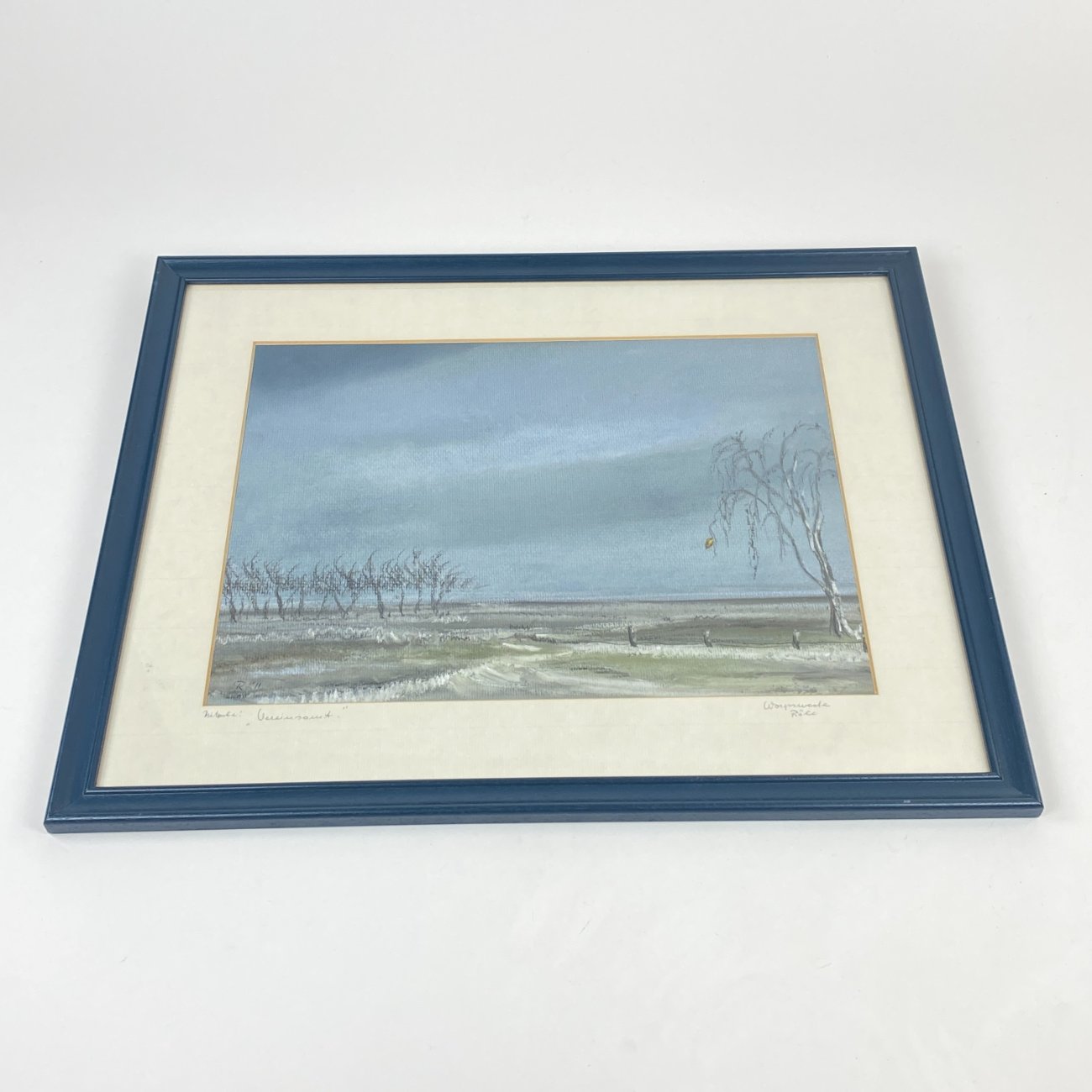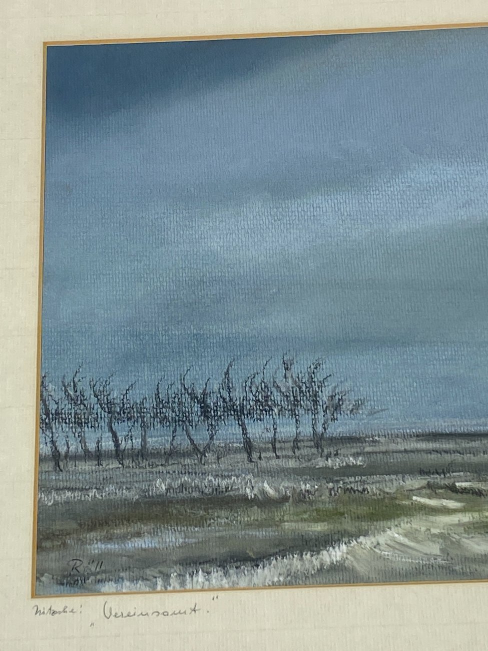 Worpswede kolonijos autoriaus kreidelėmis ant popieriaus pieštas žiemos peizažas “Vereinsamt” mediniame rėme su stiklu. Worpswede yra istorinė menininkų kolonija netoli Brėmeno, kurią 1889 m. įkūrė tokie dailininkai kaip Fritz Mackensen ir Otto Modersohn, siekdami pavaizduoti gamtą ir kaimo gyvenimą Teufelsmoor regione.