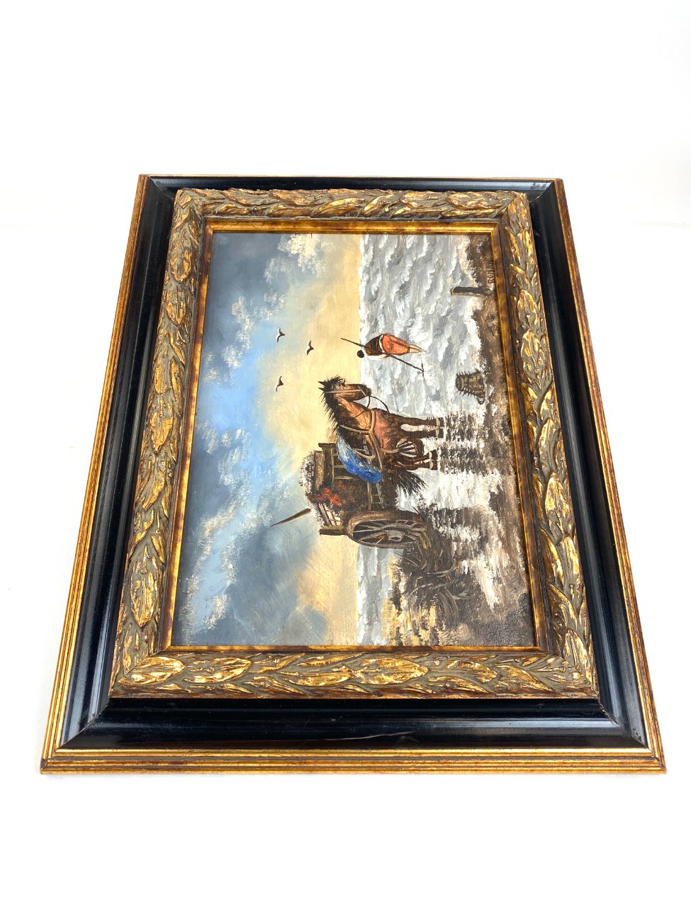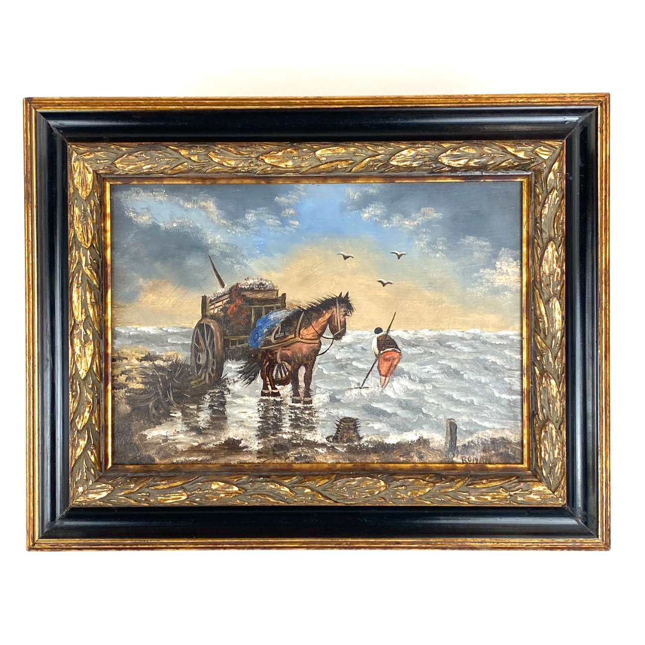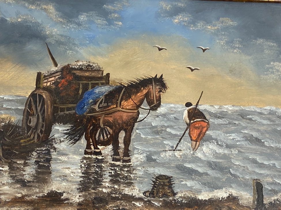 Ant medienos tapytas jūrinės tematikos paveikslas mediniame rėme.