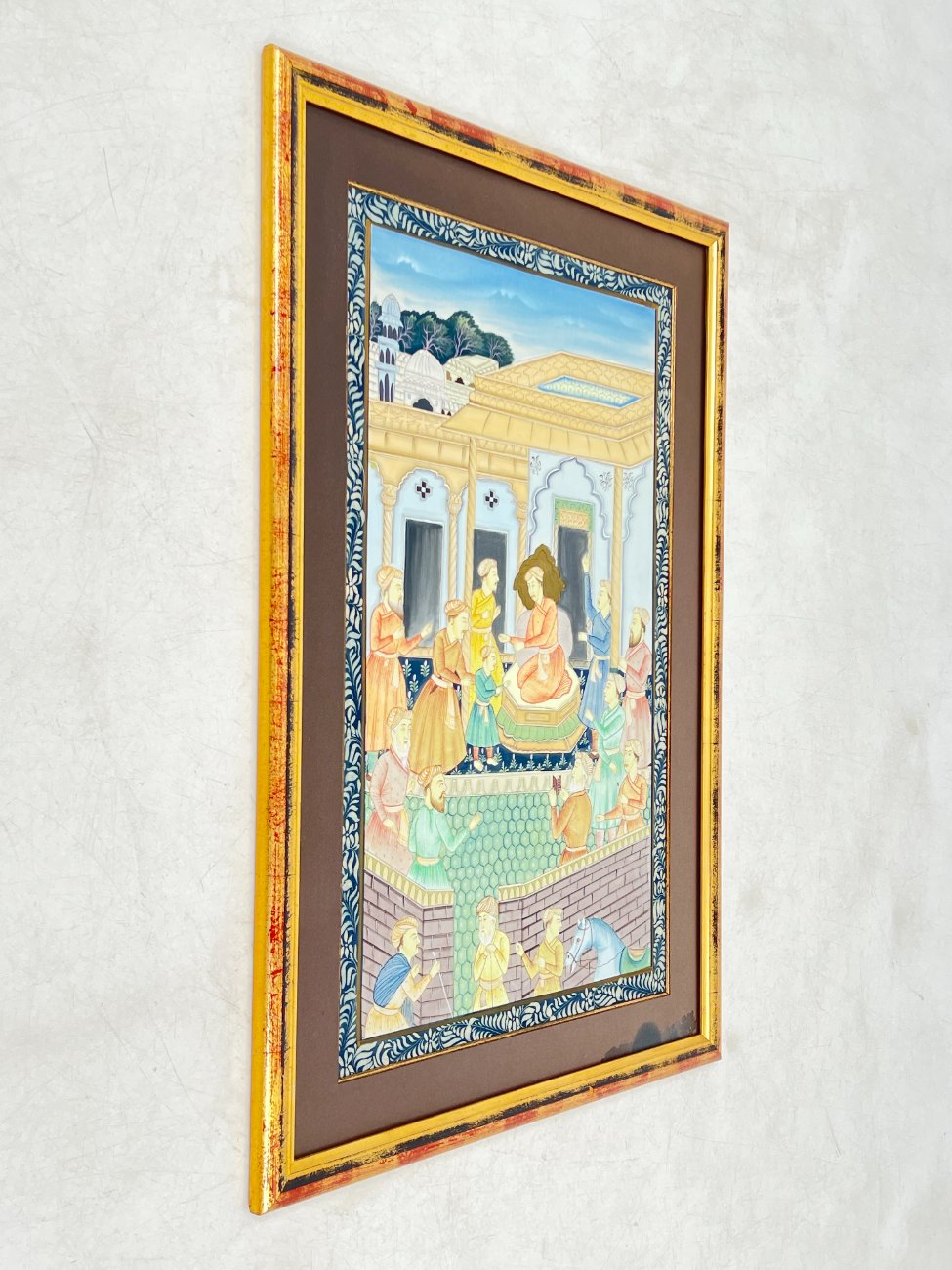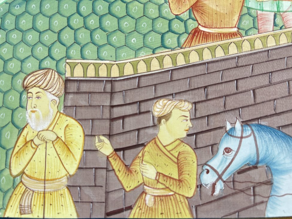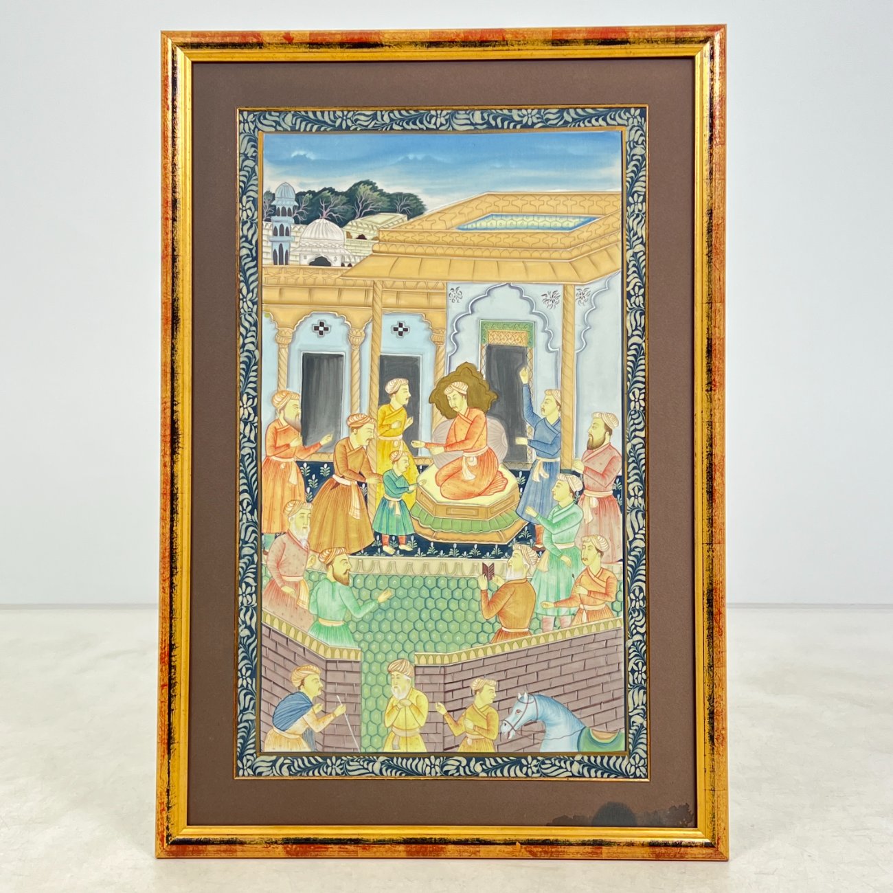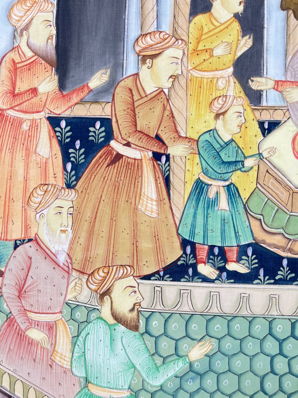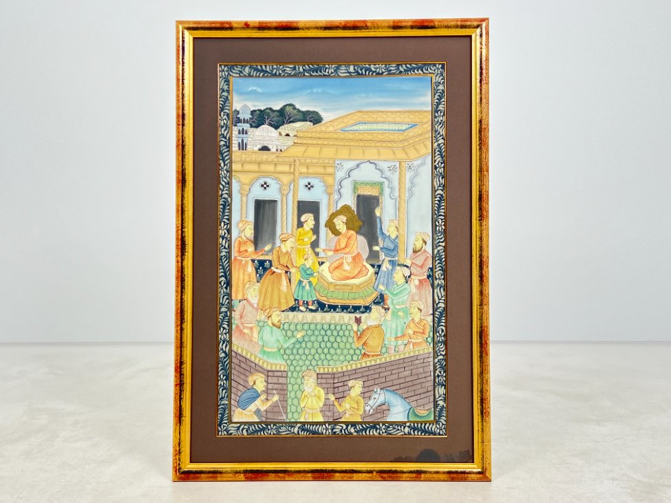 Ant audinio tapytas rytietiškas paveikslas mediniame rėme su stiklu.