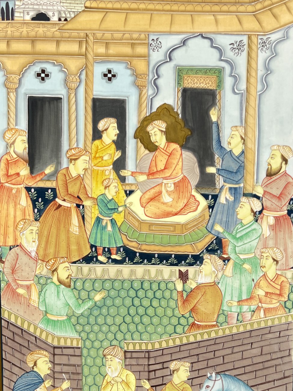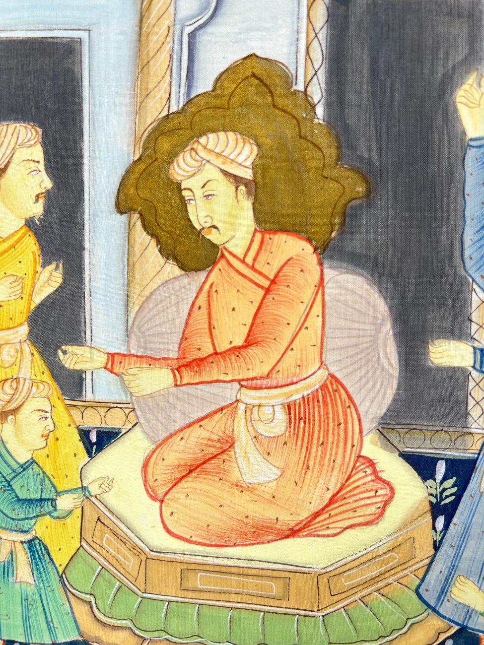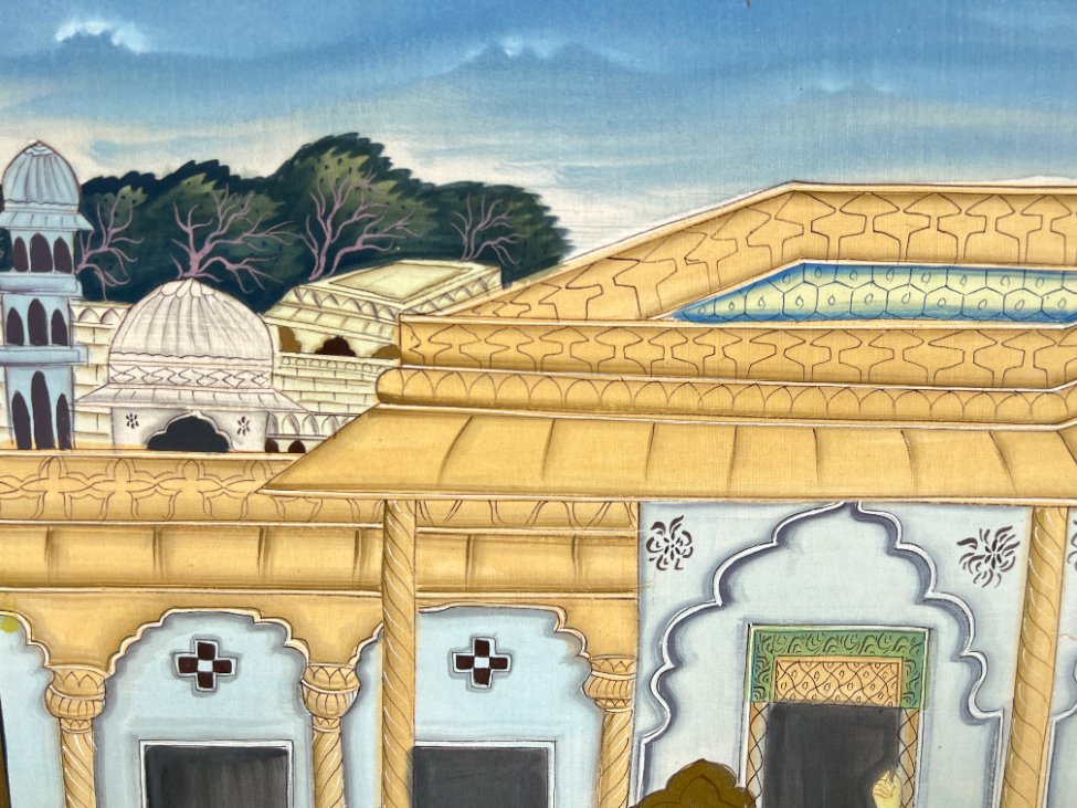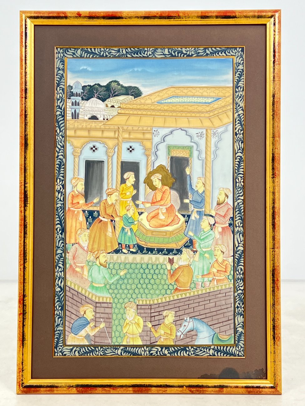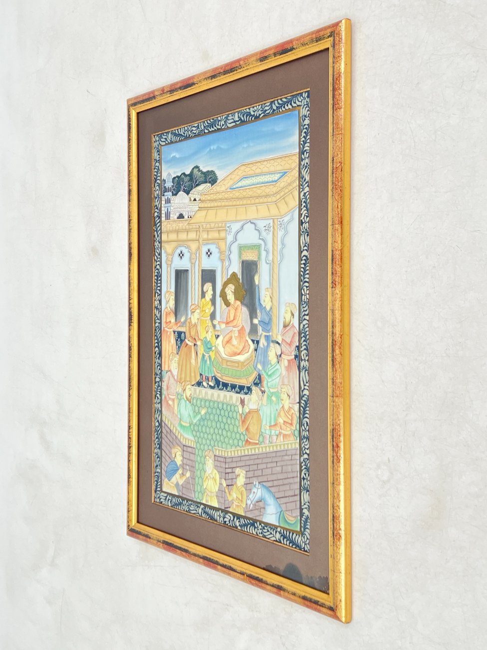 Ant audinio tapytas rytietiškas paveikslas mediniame rėme su stiklu.