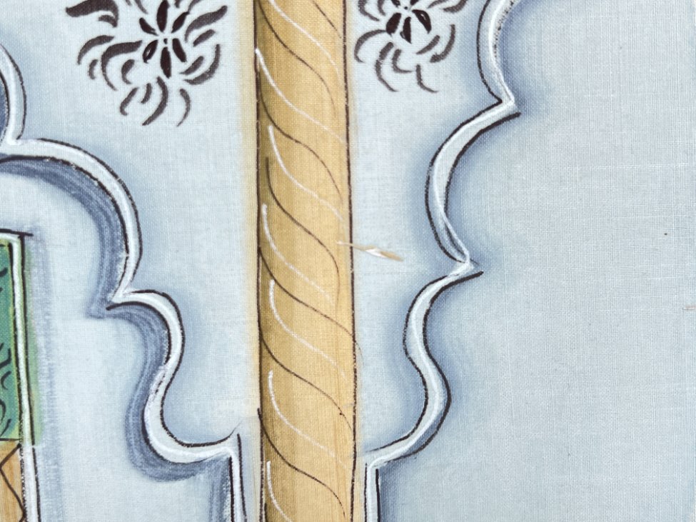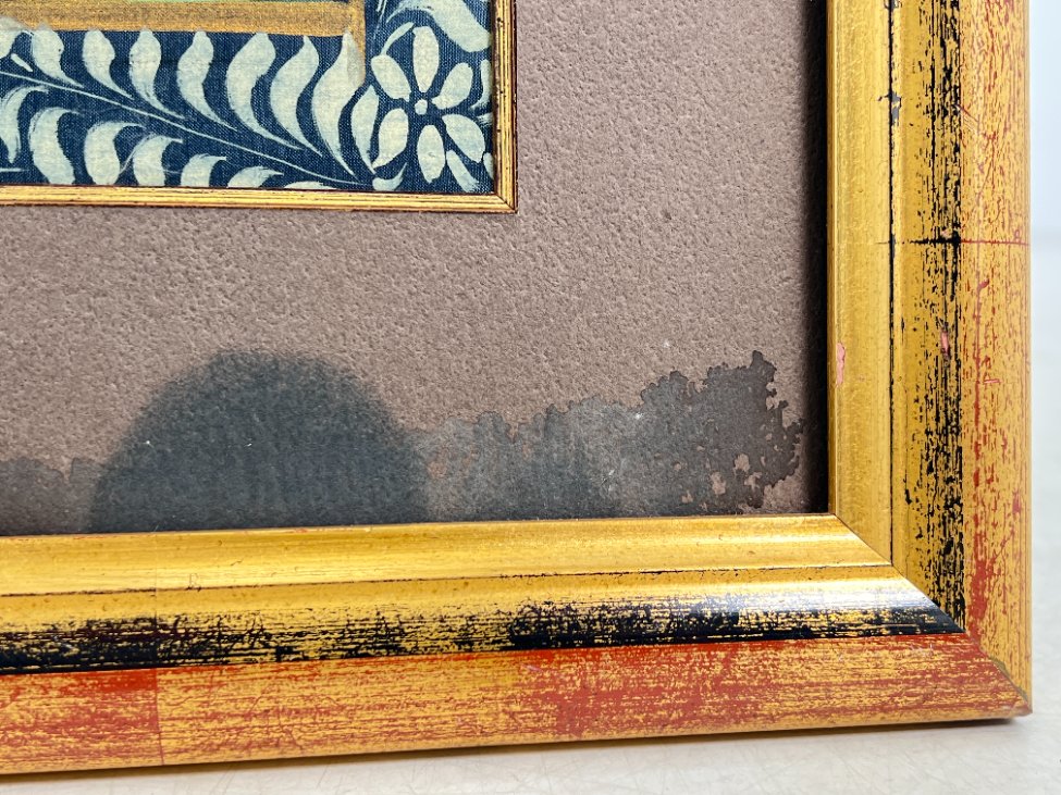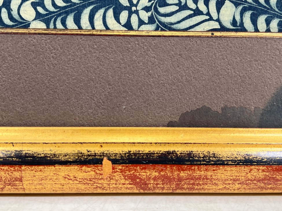 | Papildoma informacija | Nuskelta dalis rėmo apatinėje dalyje. Drėgmės pažeistas pasportas apatinėje dalyje. Vienoje vietoje įbrėžtas paveikslo audinys. |