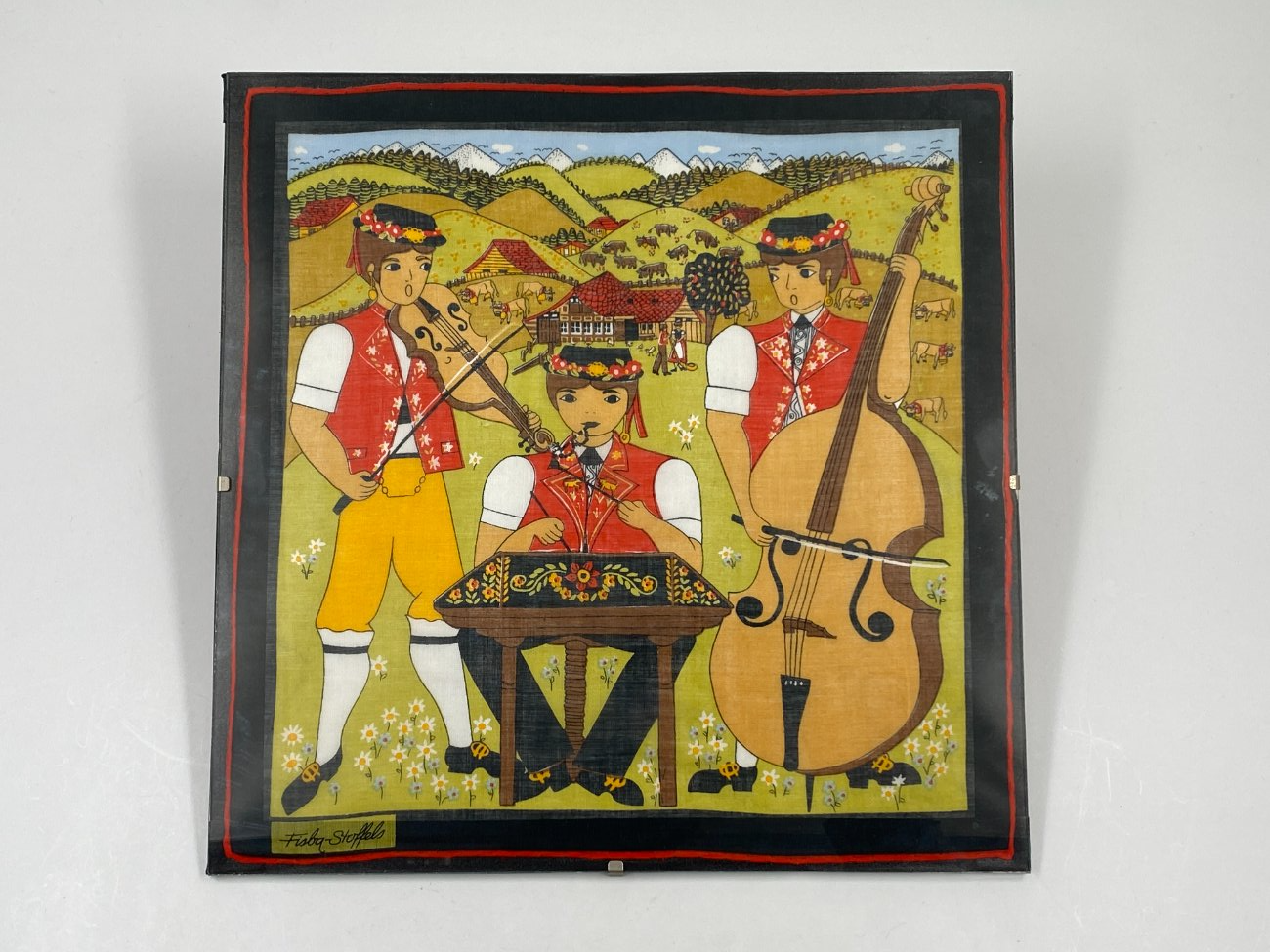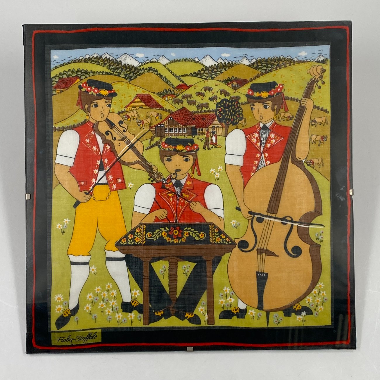 “Fisba Stoffels” įstiklinta skarelė su muzikantais.