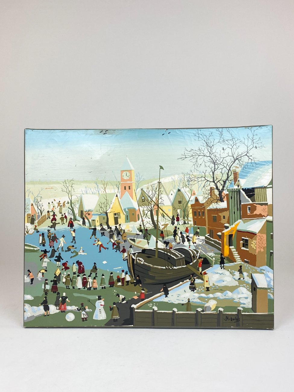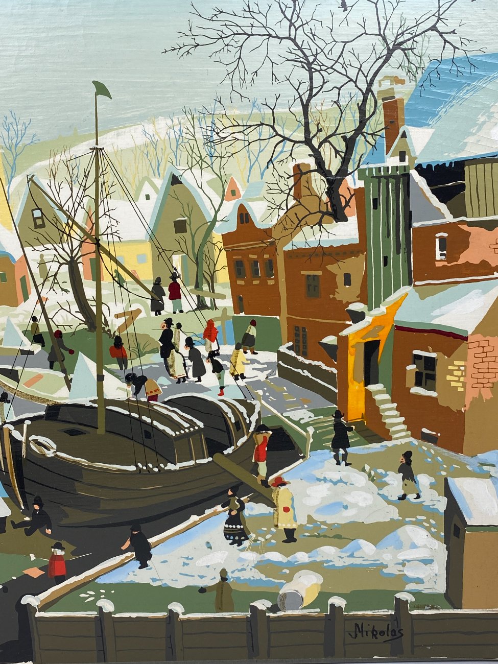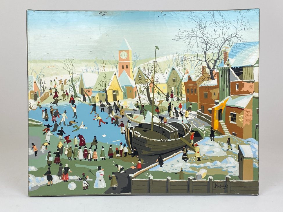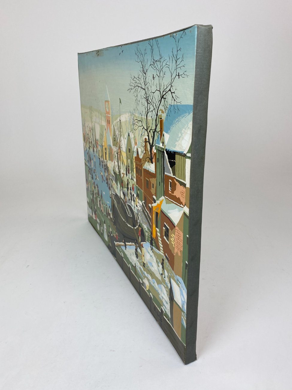 Aliejiniais dažais ant drobės tapytas žiemiškas miestelio peizažas 2×50,5×40,5 cm
