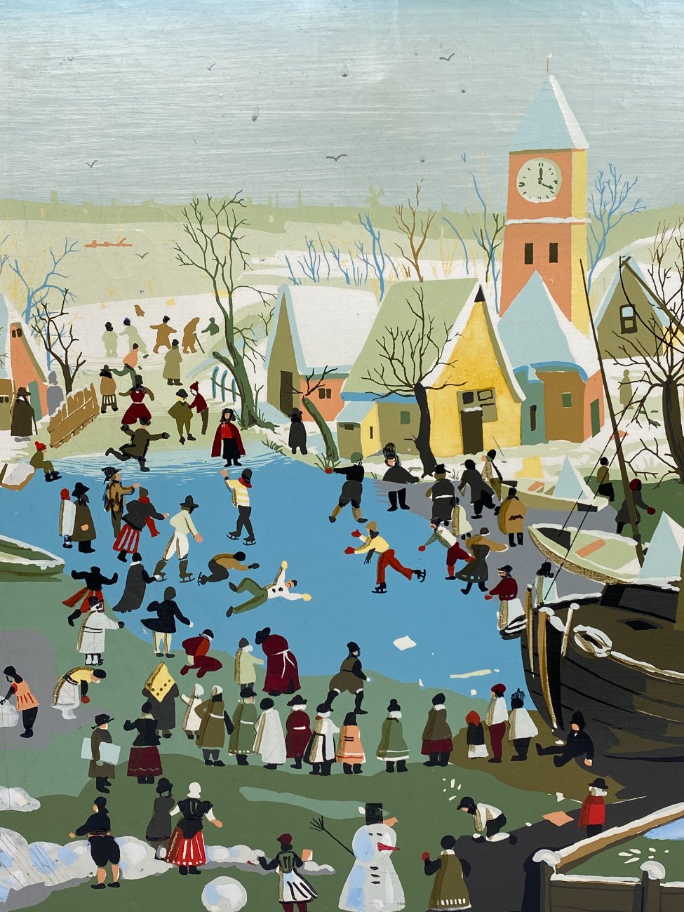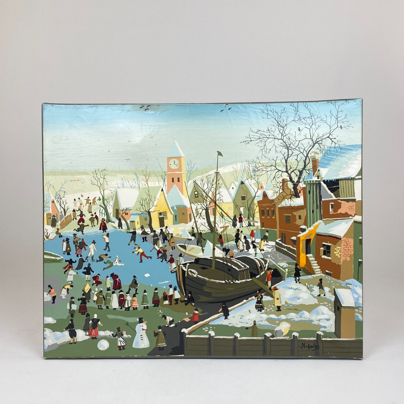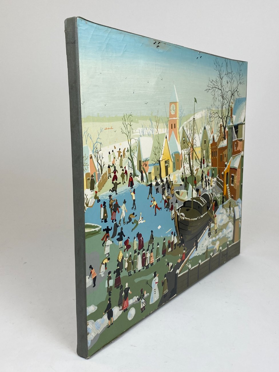 Aliejiniais dažais ant drobės tapytas žiemiškas miestelio peizažas 2×50,5×40,5 cm
