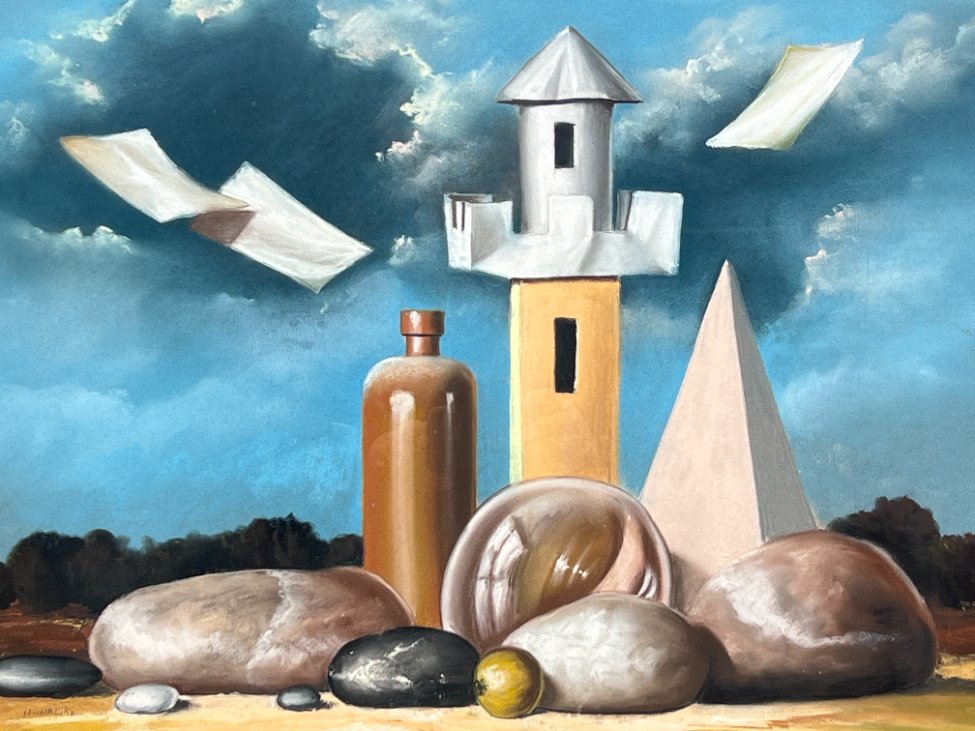 Akvarele tapytas natiurmortas įstiklintame rėme