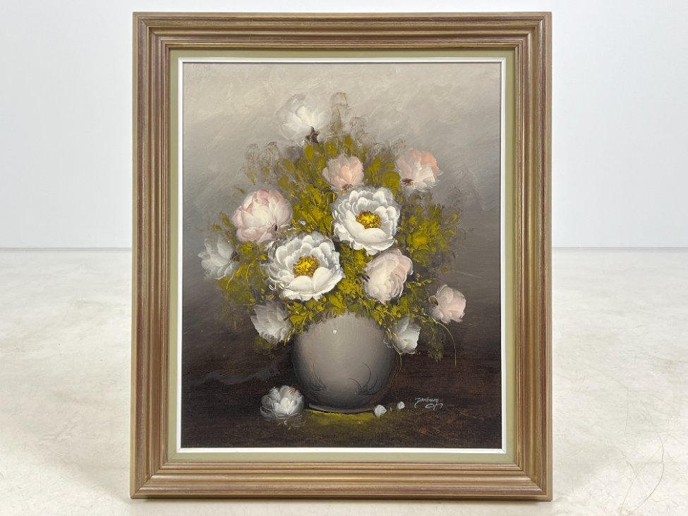Ant drobės tapytas natiurmortas “Bijūnų puokštė” mediniame rėme.