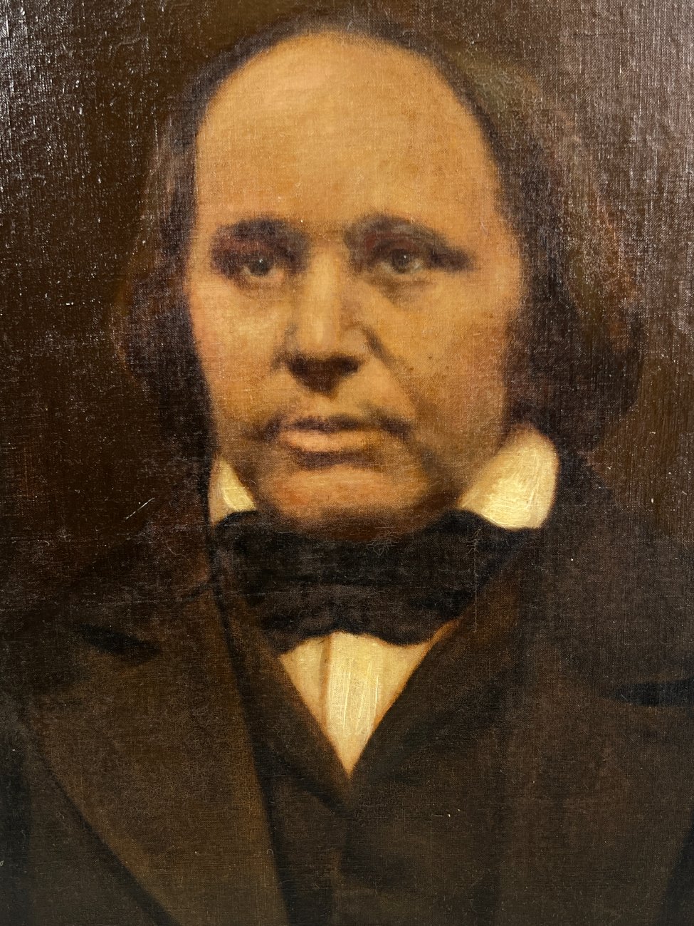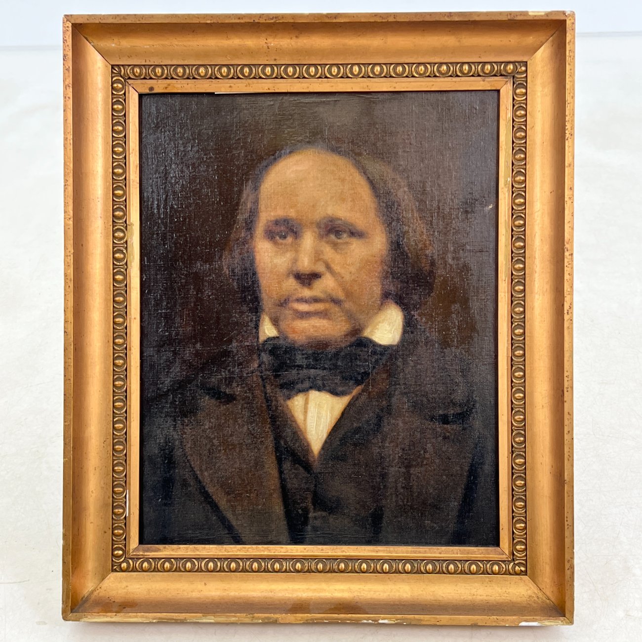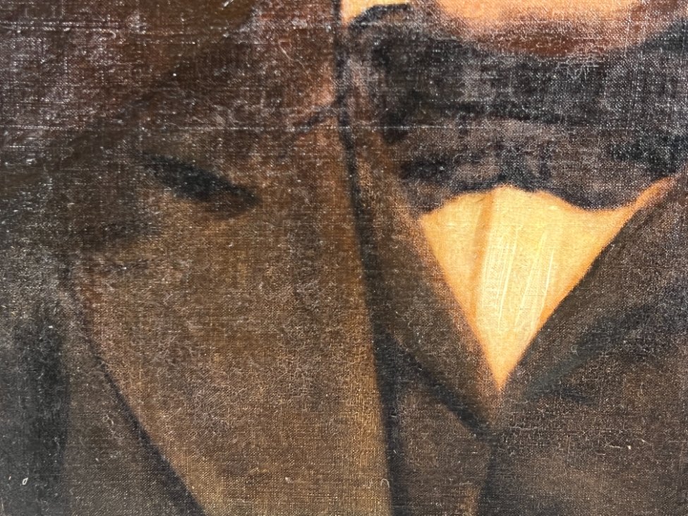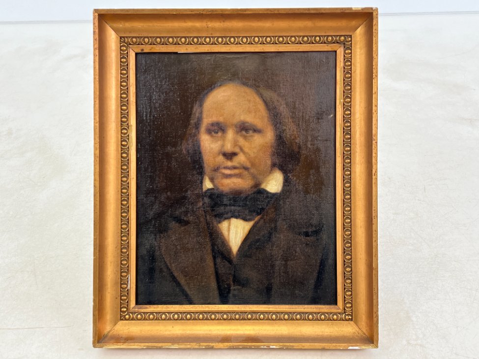 Ant drobės aliejiniais dažais tapytas vyro portretas mediniame rėme.