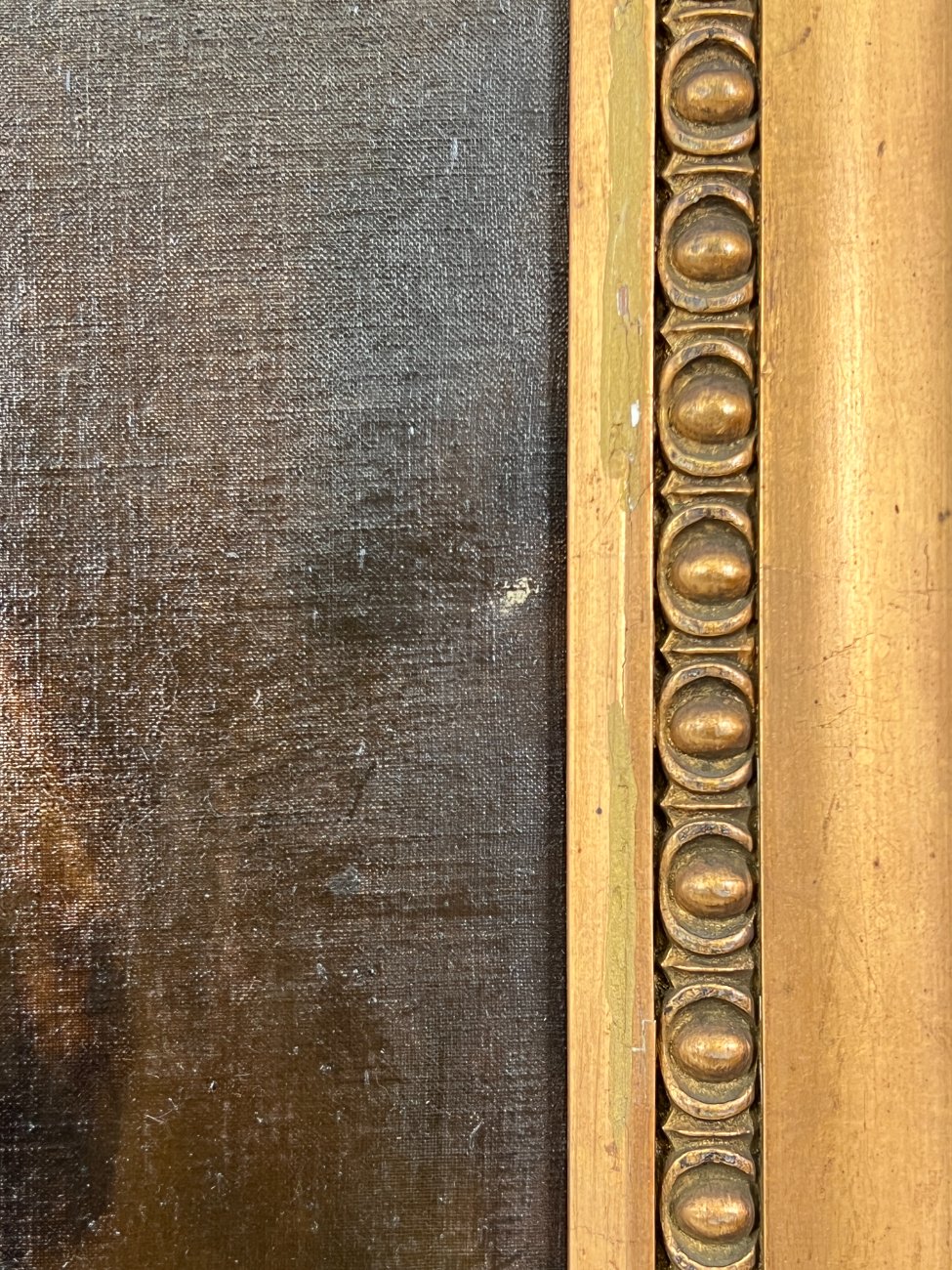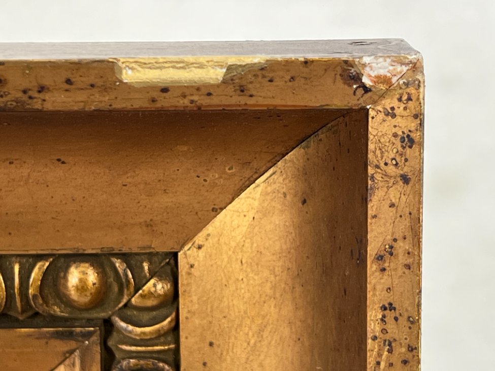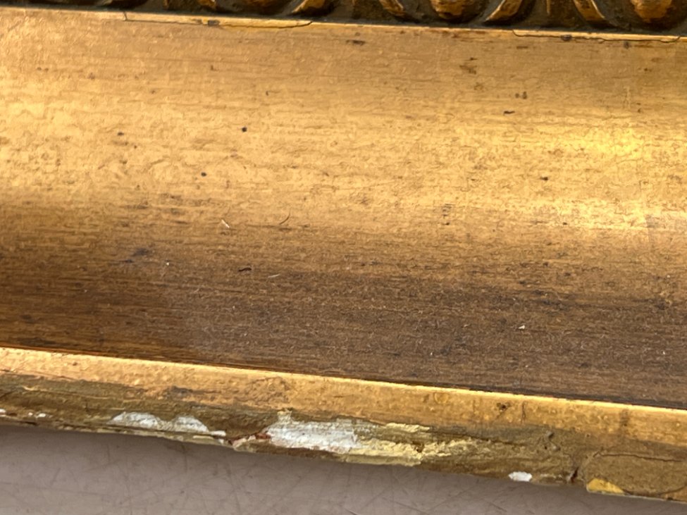 | Papildoma informacija | Vietomis apdaužytas rėmas, yra rėmo dažų pažeidimų. Ant drobės yra įmušimas. |