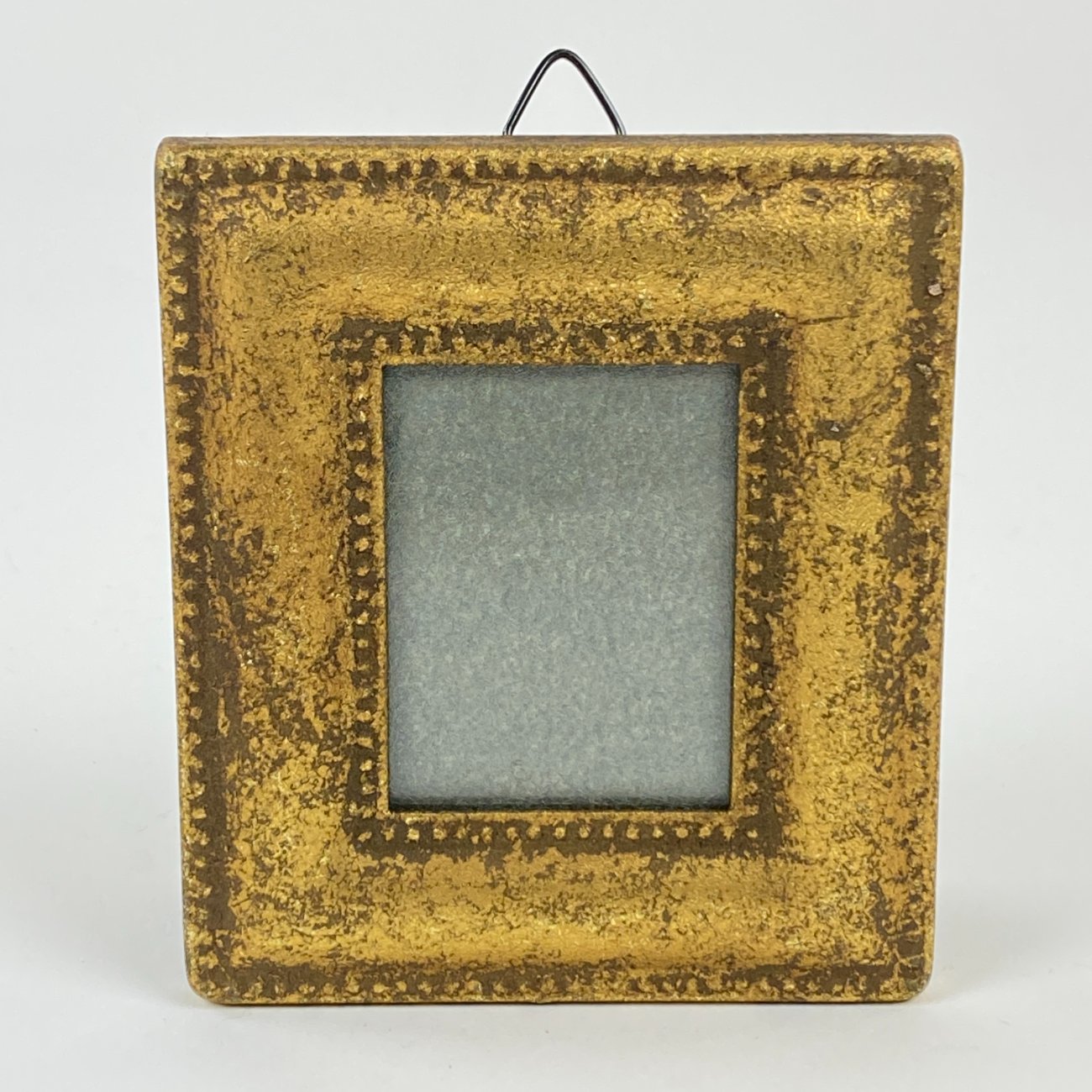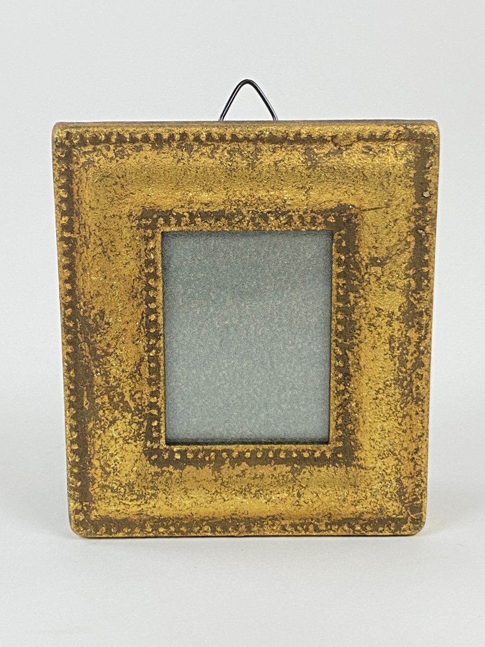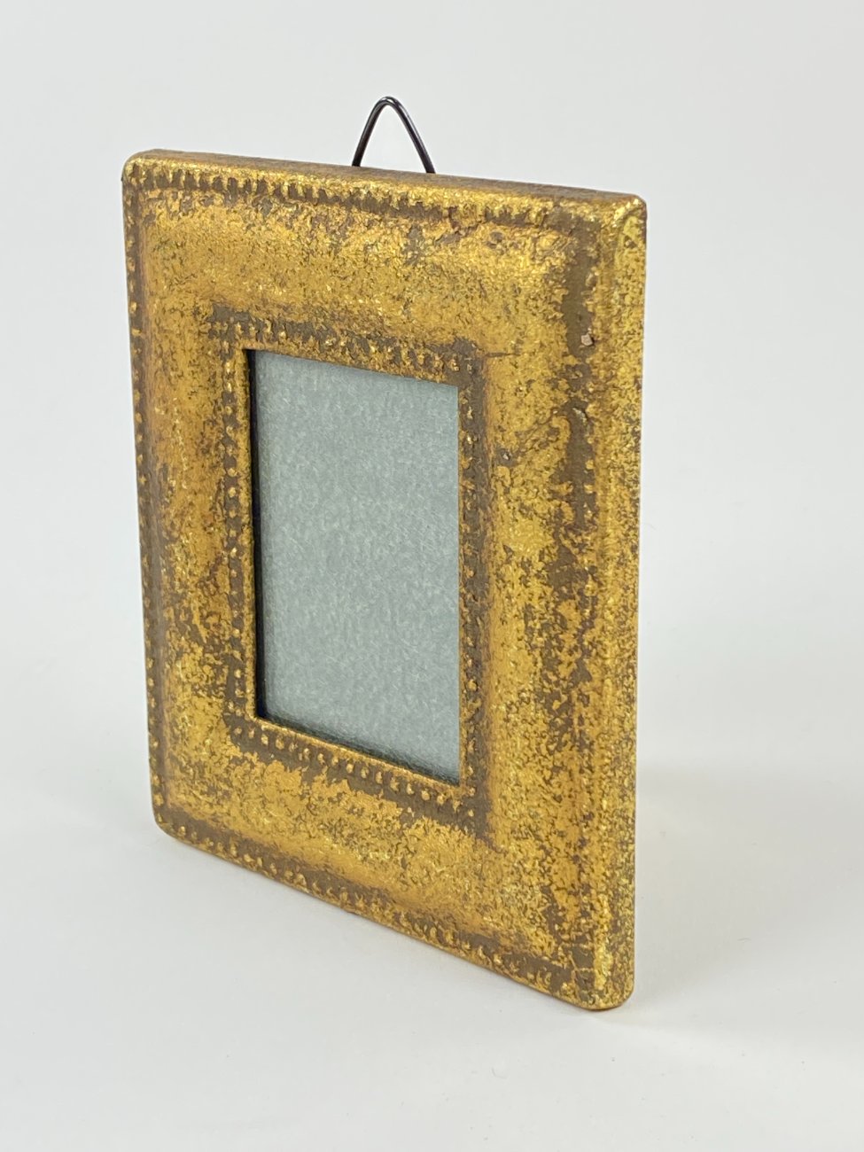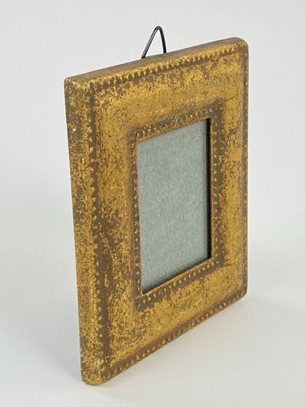 Miniatiūrinis kabinamas sendintas aukso spalvos rėmelis.