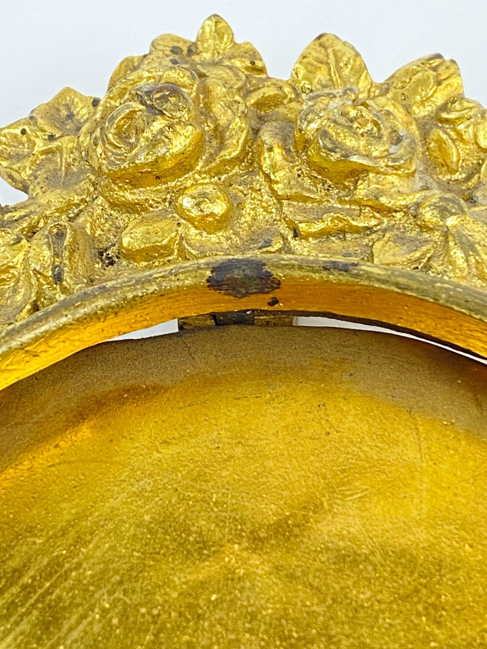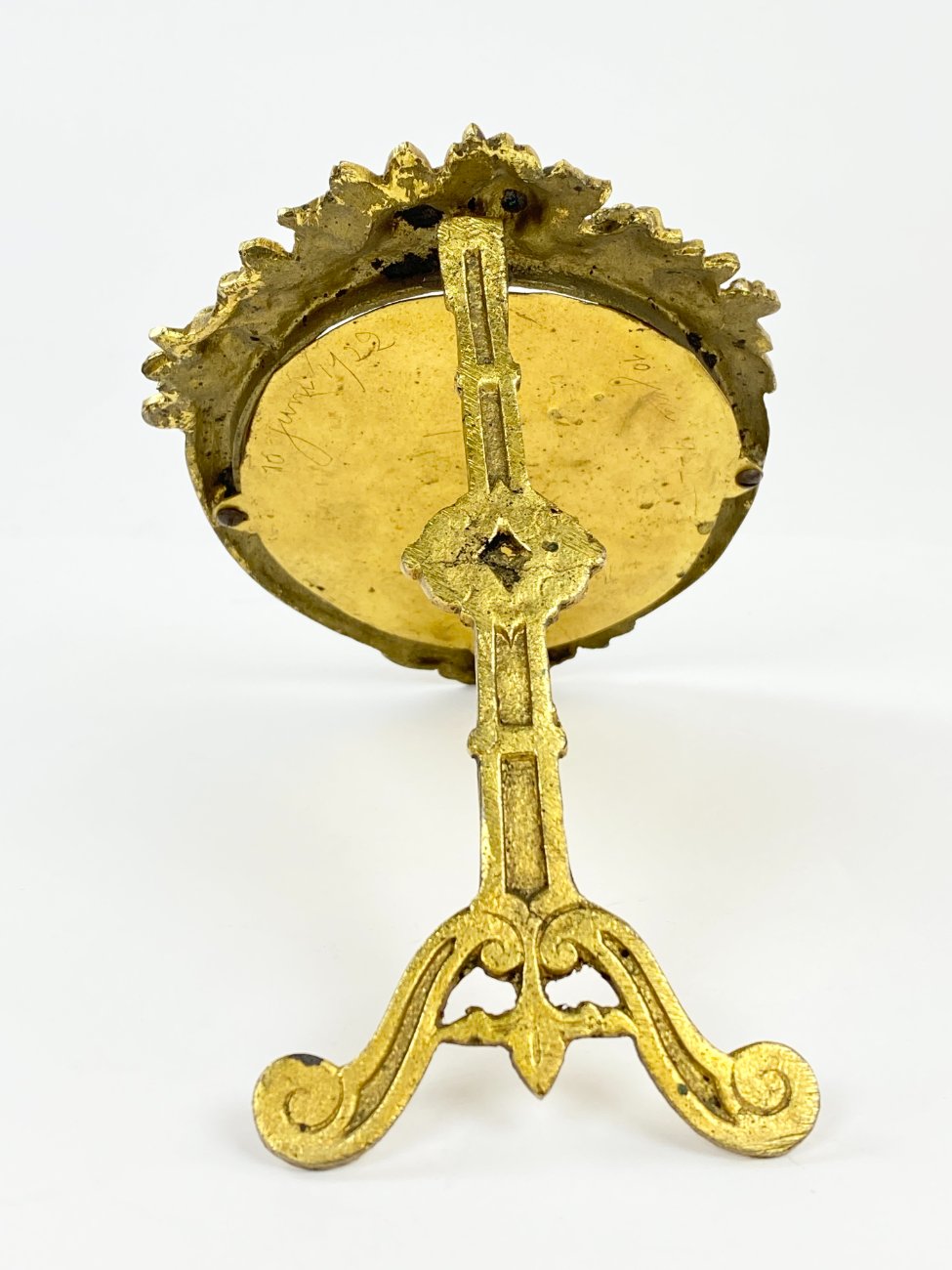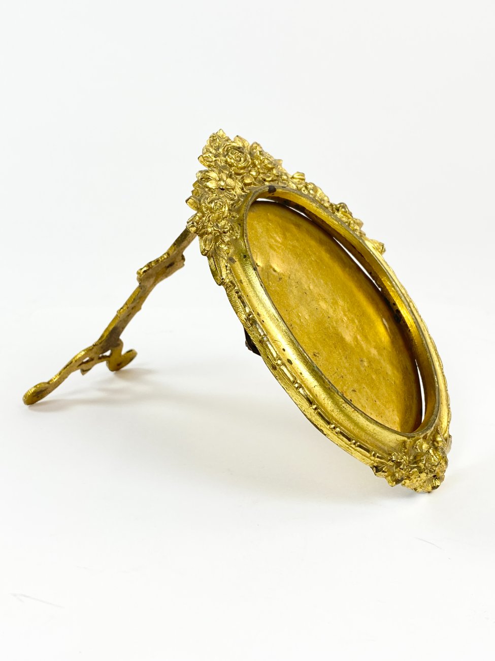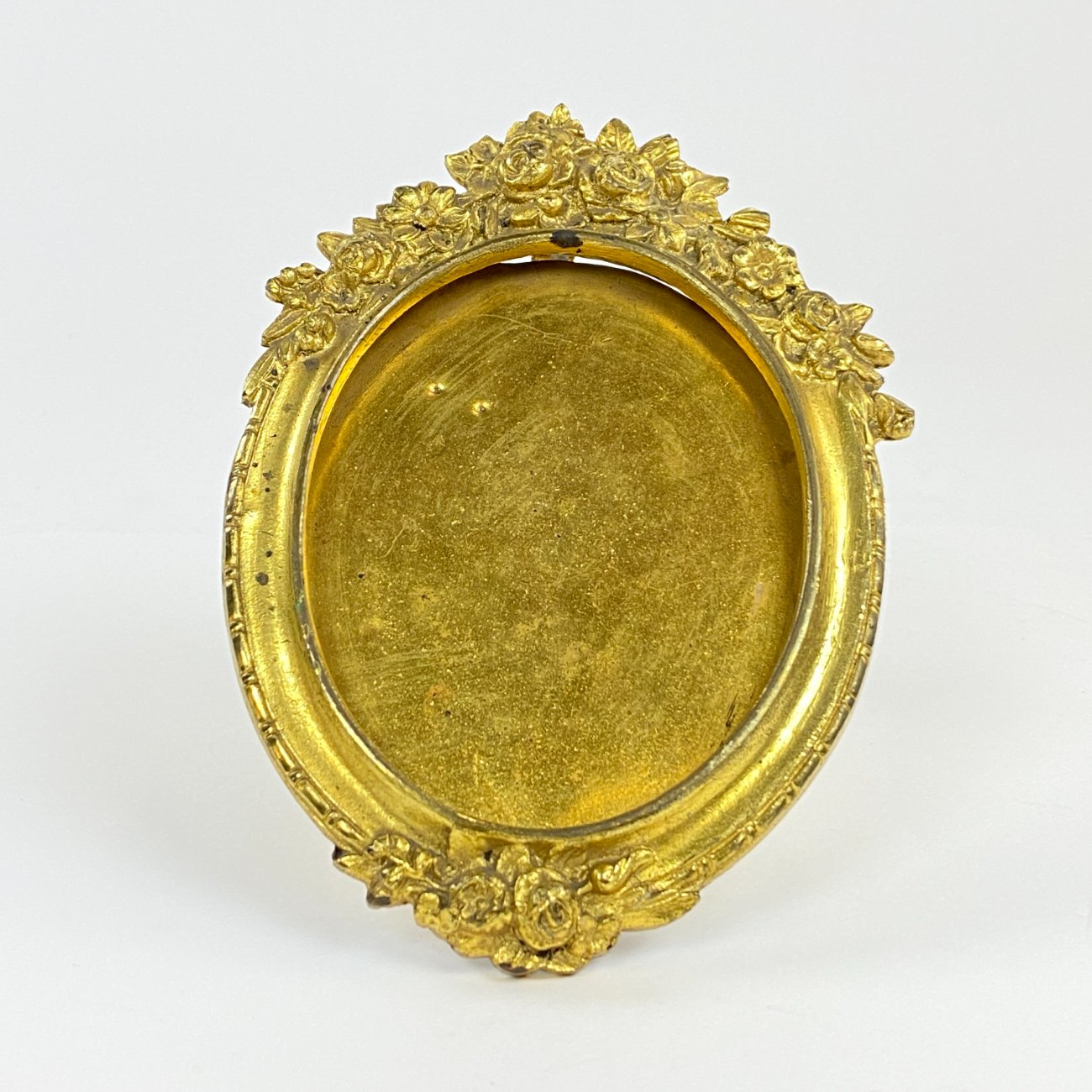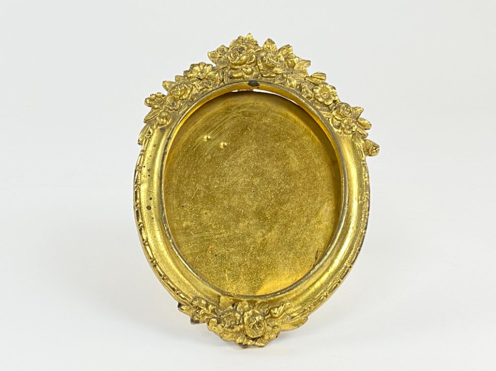 Pastatomas ovalo formos žalvarinis rėmelis.