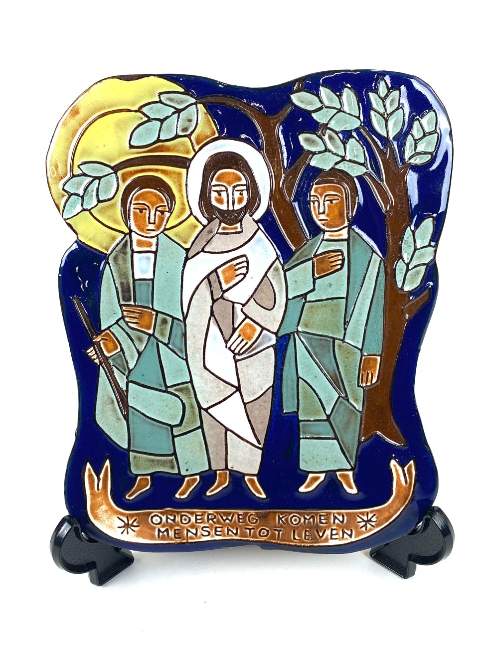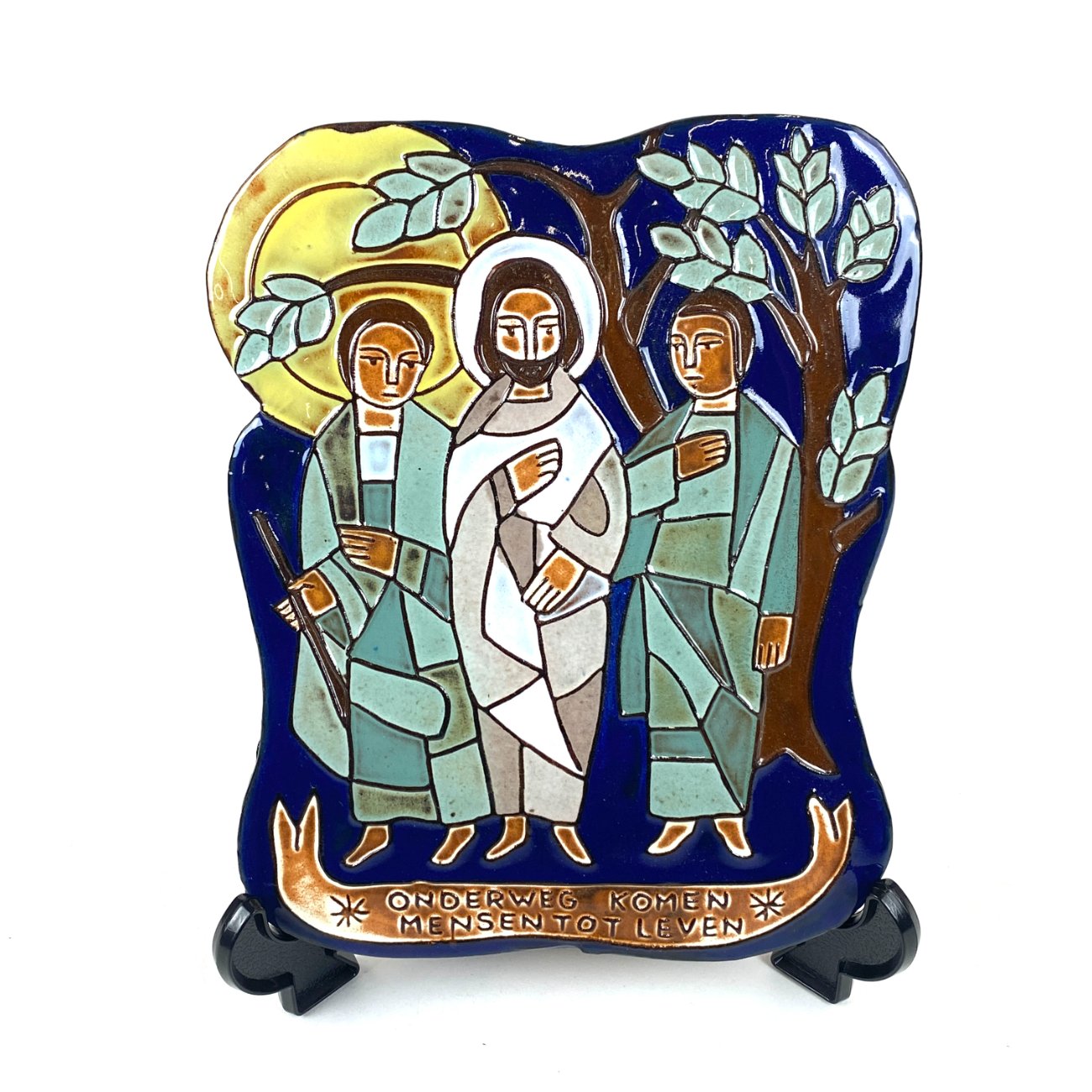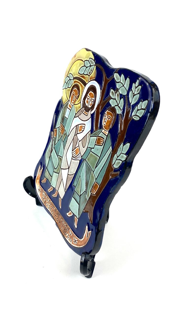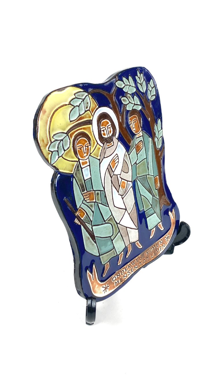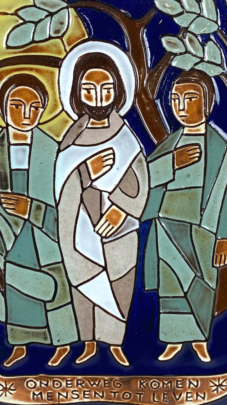 Keramikinis pakabinamas bareljefas su Jėzaus Kristaus atvaizdu “Onderweg komen mensen tot leven”.