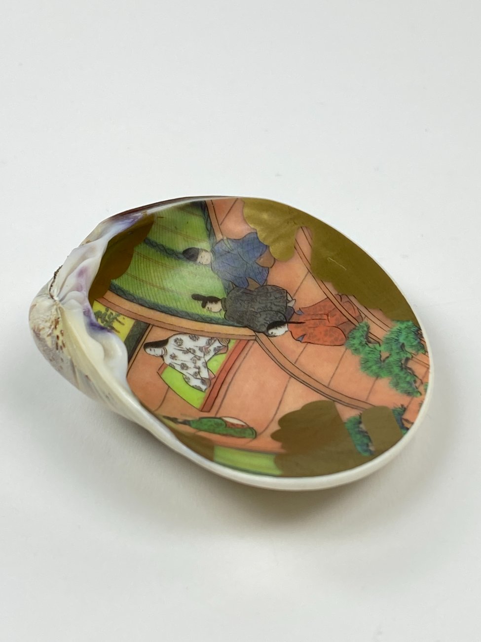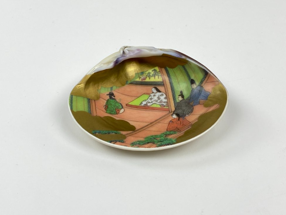 Japoniška Kai – awase žaidimo kriauklė, dekoruota piešiniu.
