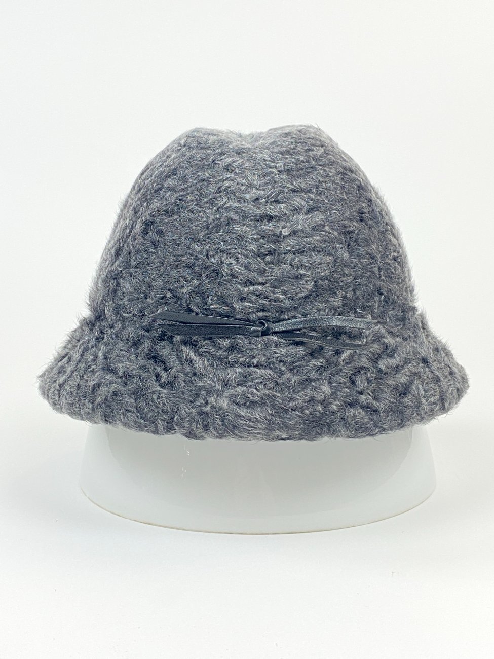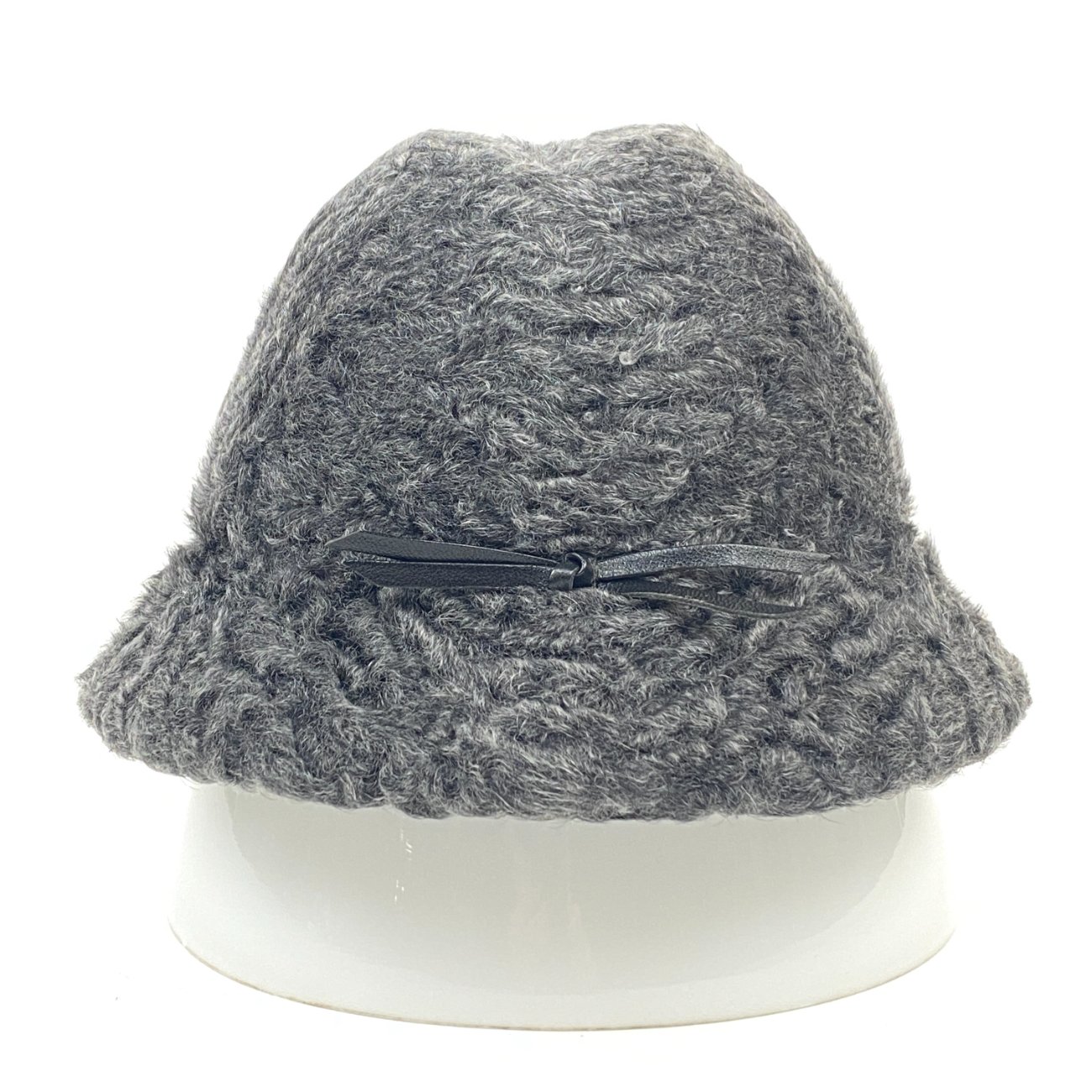 Karakulio kailio skrybėlaitė su eko odos kaspinu (56 cm) 26×24,5×16 cm