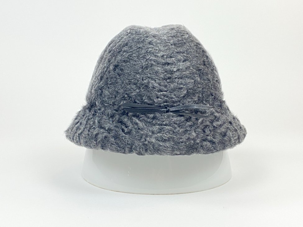 Karakulio kailio skrybėlaitė su eko odos kaspinu (56 cm).