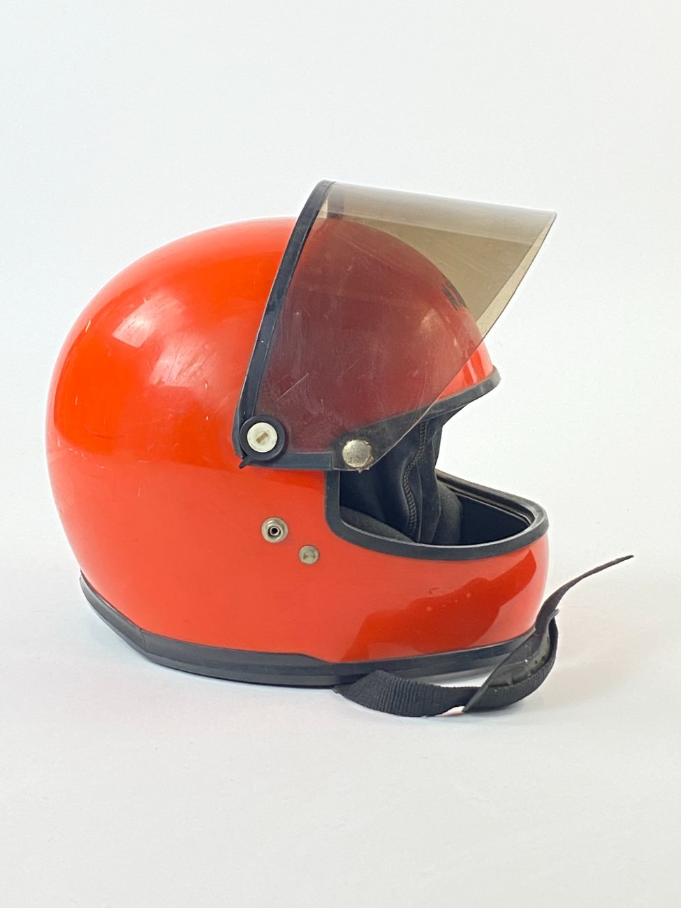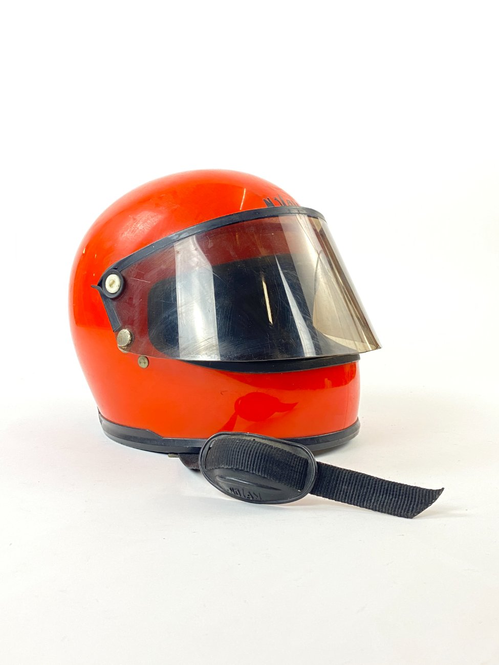 Vintažinis “Nolan” oranžinės spalvos šalmas 32x28x25 cm