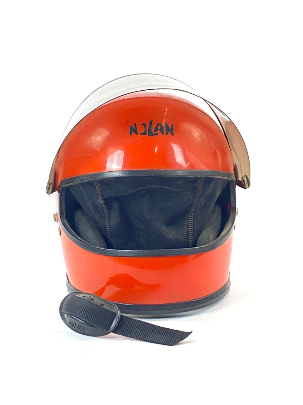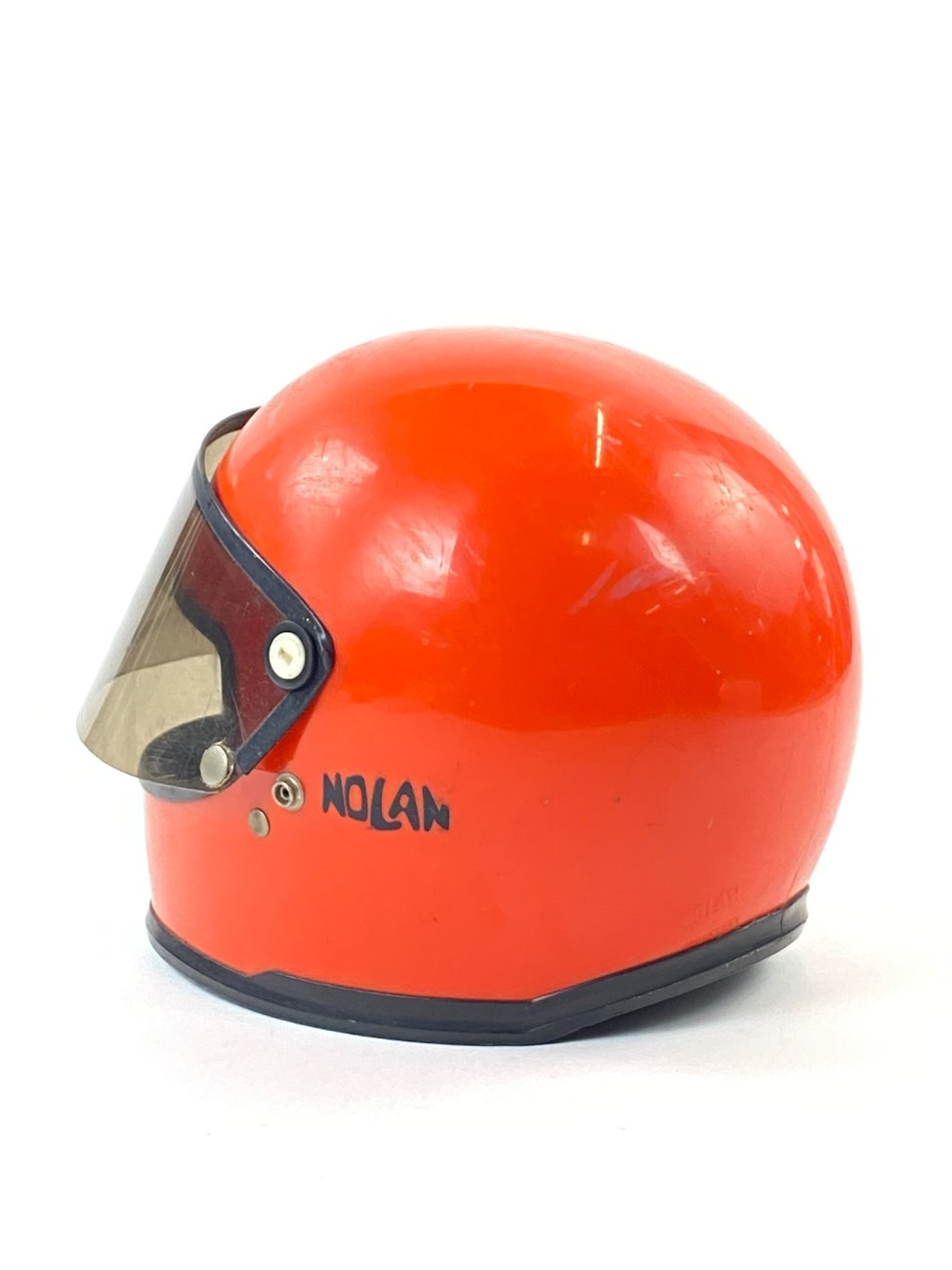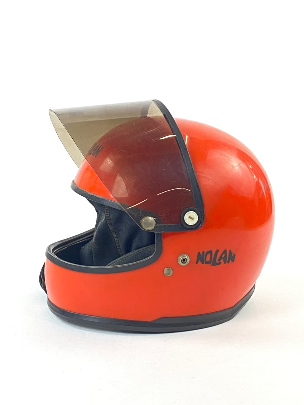 Vintažinis “Nolan” oranžinės spalvos šalmas.