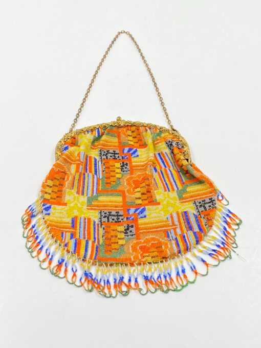 Vintažinis rankų darbo karoliukais siuvinėtas rankinukas su žalvariniu rėmu ir rankenėle 1,5x19x35 cm